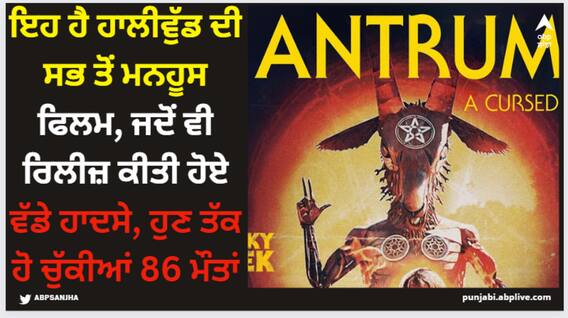 Antrum Deadliest Movie In The World: ਹੌਰਰ ਫਿਲਮਾਂ ਬਣਾਉਣ 'ਚ ਹਾਲੀਵੁੱਡ ਦਾ ਕੋਈ ਜਵਾਬ ਨਹੀਂ। ਹਾਲੀਵੁੱਡ 'ਚ ਬਣੀਆਂ ਹੌਰਰ ਫਿਲਮਾਂ ਅਜਿਹੀਆਂ ਹੁੰਦੀਆਂ ਹਨ, ਕਿ ਤੁਸੀਂ ਉਨ੍ਹਾਂ ਨੂੰ ਇਕੱਲੇ ਰਾਤ ਨੂੰ ਬਿਲਕੁਲ ਨਹੀਂ ਦੇਖ ਸਕਦੇ। ਪਰ ਕੀ ਤੁਹਾਨੂੰ ਪਤਾ ਹੈ ਕਿ ਕਈ ਫਿਲਮਾਂ ਹਾਲੀਵੁੱਡ ਨੇ ਅਜਿਹੀਆਂ ਵੀ ਬਣਾਈਆਂ ਹਨ, ਜੋ ਬੇਹੱਦ ਮਨਹੂਸ ਸਾਬਤ ਹੋ ਚੁੱਕੀਆਂ ਹਨ। ਅੱਜ ਅਸੀਂ ਤੁਹਾਨੂੰ ਇੱਕ ਅਜਿਹੀ ਹੀ ਹੌਰਰ ਹਾਲੀਵੁੱਡ ਮੂਵੀ ਬਾਰੇ ਦੱਸਣ ਜਾ ਰਹੇ ਹਾਂ, ਜਿਸ ਨੂੰ 1970 ਤੋਂ ਰਿਲੀਜ਼ ਕਰਨ ਦੀ ਕੋਸ਼ਿਸ਼ ਕੀਤੀ ਜਾ ਰਹੀ ਹੈ, ਪਰ ਕਦੇ ਵੀ ਇਹ ਫਿਲਮ ਇੱਕ ਦਿਨ ਤੋਂ ਵੱਧ ਥੀਏਟਰ 'ਚ ਚੱਲ ਨਹੀਂ ਸਕੀ, ਕਿਉਂਕਿ ਜਦੋਂ ਵੀ ਇਸ ਫਿਲਮ ਨੂੰ ਰਿਲੀਜ਼ ਕੀਤਾ ਜਾਂਦਾ ਸੀ, ਤਾਂ ਕੋਈ ਵੱਡਾ ਹਾਦਸਾ ਹੋ ਜਾਂਦਾ ਸੀ। ਤੁਹਾਨੂੰ ਇਹ ਵੀ ਜਾਣ ਕੇ ਹੈਰਾਨੀ ਹੋਵੇਗੀ ਕਿ ਇਸ ਫਿਲਮ ਦੀ ਵਜ੍ਹਾ ਕਰਕੇ ਹੁਣ ਤੱਕ 86 ਲੋਕਾਂ ਦੀ ਮੌਤ ਹੋ ਚੁੱਕੀ ਹੈ।