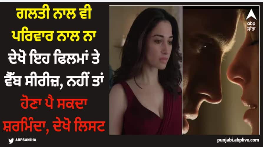 Top 10 steamiest movies web series: OTT 'ਤੇ ਹਰ ਰੋਜ਼ ਕਈ ਵਿਲੱਖਣ ਕੰਟੈਂਟ ਦੇਖਣ ਨੂੰ ਮਿਲਦਾ ਹੈ। ਅਪਰਾਧ ਹੋਵੇ ਜਾਂ ਦਹਿਸ਼ਤ ਜਾਂ ਸਸਪੈਂਸ, ਇੱਥੇ ਬਹੁਤ ਸਾਰੀਆਂ ਵੈੱਬ ਸੀਰੀਜ਼ ਅਤੇ ਫਿਲਮਾਂ ਹਨ ਜੋ ਤੁਸੀਂ ਦੋਸਤਾਂ ਜਾਂ ਪਰਿਵਾਰ ਨਾਲ ਦੇਖ ਸਕਦੇ ਹੋ। ਪਰ ਅੱਜ ਅਸੀਂ ਤੁਹਾਨੂੰ ਕੁਝ ਅਜਿਹੀਆਂ ਵੈੱਬ ਸੀਰੀਜ਼ ਅਤੇ ਫਿਲਮਾਂ ਬਾਰੇ ਦੱਸਣ ਜਾ ਰਹੇ ਹਾਂ, ਜਿਨ੍ਹਾਂ ਨੂੰ ਤੁਸੀਂ ਗਲਤੀ ਨਾਲ ਵੀ ਆਪਣੇ ਪਰਿਵਾਰ ਨਾਲ ਬੈਠ ਕੇ ਨਹੀਂ ਦੇਖ ਸਕਦੇ। ਇਹ ਇਸ ਲਈ ਹੈ ਕਿਉਂਕਿ ਤੁਸੀਂ ਉਨ੍ਹਾਂ ਦੇ ਸਾਹਮਣੇ ਸ਼ਰਮਿੰਦਾ ਮਹਿਸੂਸ ਕਰ ਸਕਦੇ ਹੋ।
