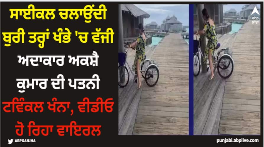 Twinkle Khanna Video: ਅਕਸ਼ੇ ਕੁਮਾਰ ਦੀ ਪਤਨੀ ਟਵਿੰਕਲ ਖੰਨਾ ਸੋਸ਼ਲ ਮੀਡੀਆ 'ਤੇ ਕਾਫੀ ਐਕਟਿਵ ਰਹਿੰਦੀ ਹੈ। ਟਵਿੰਕਲ ਨੇ ਅਦਾਕਾਰੀ ਦੀ ਦੁਨੀਆ ਨੂੰ ਅਲਵਿਦਾ ਕਹਿ ਦਿੱਤਾ ਹੈ, ਪਰ ਉਹ ਸੋਸ਼ਲ ਮੀਡੀਆ ਰਾਹੀਂ ਹਰ ਮੁੱਦੇ 'ਤੇ ਆਪਣੀ ਰਾਏ ਜ਼ਾਹਰ ਕਰਨ ਤੋਂ ਪਿੱਛੇ ਨਹੀਂ ਹਟਦੀ। ਟਵਿੰਕਲ ਦੀ ਹਾਸੇ ਦੀ ਭਾਵਨਾ ਸ਼ਾਨਦਾਰ ਹੈ। ਟਵਿੰਕਲ ਆਪਣੇ ਪਰਿਵਾਰ ਨਾਲ ਛੁੱਟੀਆਂ ਮਨਾਉਣ ਲਈ ਮਾਲਦੀਵ ਗਈ ਹੋਈ ਹੈ। ਜਿੱਥੇ ਉਨ੍ਹਾਂ ਨੇ ਪੂਰੇ ਪਰਿਵਾਰ ਨਾਲ ਆਪਣਾ ਜਨਮਦਿਨ ਵੀ ਮਨਾਇਆ। ਟਵਿੰਕਲ ਨੇ ਹੁਣ ਇੱਕ ਵੀਡੀਓ ਸ਼ੇਅਰ ਕੀਤੀ ਹੈ ਜਿਸ ਵਿੱਚ ਉਸਦੀ ਸਾਈਕਲ ਇੱਕ ਖੰਭੇ ਨਾਲ ਟਕਰਾ ਗਈ।