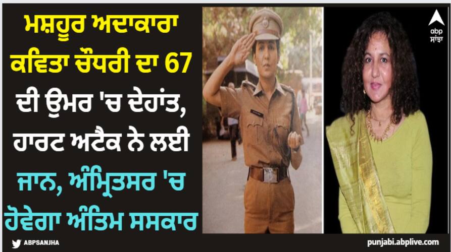 ਕਵਿਤਾ ਚੌਧਰੀ ਦੀ ਵੀਰਵਾਰ ਰਾਤ ਨੂੰ ਹੋਈ ਮੌਤਅਭਿਨੇਤਾ ਅਨੰਗ ਦੇਸਾਈ, ਜੋ ਨੈਸ਼ਨਲ ਸਕੂਲ ਆਫ ਡਰਾਮਾ ਵਿੱਚ ਕਵਿਤਾ ਚੌਧਰੀ ਦੇ ਬੈਚਮੇਟ ਸਨ, ਨੇ ਏਬੀਪੀ ਨਿਊਜ਼ ਨੂੰ ਜਾਣਕਾਰੀ ਦਿੰਦੇ ਹੋਏ ਬੀਤੀ ਰਾਤ ਕਵਿਤਾ ਚੌਧਰੀ ਦੀ ਮੌਤ ਦੀ ਪੁਸ਼ਟੀ ਕੀਤੀ। ਕਵਿਤਾ ਚੌਧਰੀ ਦੇ ਭਤੀਜੇ ਅਜੈ ਸਿਆਲ ਨੇ 'ਏਬੀਪੀ ਨਿਊਜ਼' ਨੂੰ ਦੱਸਿਆ ਕਿ ਕਵਿਤਾ ਚੌਧਰੀ ਪਿਛਲੇ ਤਿੰਨ-ਚਾਰ ਦਿਨਾਂ ਤੋਂ ਅੰਮ੍ਰਿਤਸਰ ਦੇ ਪਾਰਵਤੀ ਦੇਵੀ ਹਸਪਤਾਲ 'ਚ ਦਾਖਲ ਸੀ, ਜਿੱਥੇ ਉਸ ਦਾ ਇਲਾਜ ਚੱਲ ਰਿਹਾ ਸੀ।ਬੀਤੀ ਰਾਤ 8.30 ਵਜੇ ਉਸ ਨੇ ਅੰਮ੍ਰਿਤਸਰ ਦੇ ਇਸੇ ਹਸਪਤਾਲ 'ਚ ਆਖਰੀ ਸਾਹ ਲਿਆ।