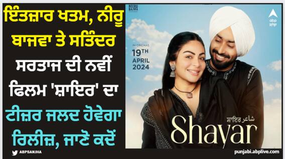 Neeru Bajwa Satinder Sartaaj Film Shayar Teaser: ਪੰਜਾਬੀ ਅਦਾਕਾਰਾ ਨੀਰੂ ਬਾਜਵਾ ਇੰਨੀਂ ਦਿਨੀਂ ਖੂਬ ਸੁਰਖੀਆਂ ਬਟੋਰ ਰਹੀ ਹੈ। ਦਰਅਸਲ, ਅਦਾਕਾਰਾ ਦੀ ਨਵੀਂ ਫਿਲਮ 'ਸ਼ਾਇਰ' 19 ਅਪ੍ਰੈਲ ਨੂੰ ਰਿਲੀਜ਼ ਹੋਣ ਜਾ ਰਹੀ ਹੈ। ਇਸ ਫਿਲਮ ਨੀਰੂ ਇੱਕ ਵਾਰ ਫਿਰ ਤੋਂ ਗਾਇਕ ਤੇ ਅਦਾਕਾਰ ਸਤਿੰਦਰ ਸਰਤਾਜ ਨਾਲ ਰੋਮਾਂਸ ਕਰਦੀ ਨਜ਼ਰ ਆਉਣ ਵਾਲੀ ਹੈ। ਹਾਲ ਹੀ 'ਚ ਫਿਲਮ ਦਾ ਪੋਸਟਰ ਰਿਲੀਜ਼ ਹੋਇਆ ਸੀ, ਜਿਸ ਵਿੱਚ ਦੋਵਾਂ ਦੀ ਰੋਮਾਂਟਿਕ ਕੈਮਿਸਟਰੀ ਨੂੰ ਕਾਫੀ ਪਸੰਦ ਕੀਤਾ ਗਿਆ ਸੀ। ਇਸ ਦੇ ਨਾਲ ਨਾਲ ਫਿਲਮ ਦੇ ਲਵ ਸੌਂਗ 'ਮਹਿਬੂਬ ਜੀ' ਨੇ ਵੀ ਦਰਸ਼ਕਾਂ ਦਾ ਖੂਬ ਦਿਲ ਜਿੱਤਿਆ ਸੀ। ਇਸ ਤੋਂ ਬਾਅਦ ਹੁਣ ਜਲਦ ਹੀ ਫਿਲਮ ਦਾ ਟੀਜ਼ਰ ਰਿਲੀਜ਼ ਹੋਣ ਜਾ ਰਿਹਾ ਹੈ।