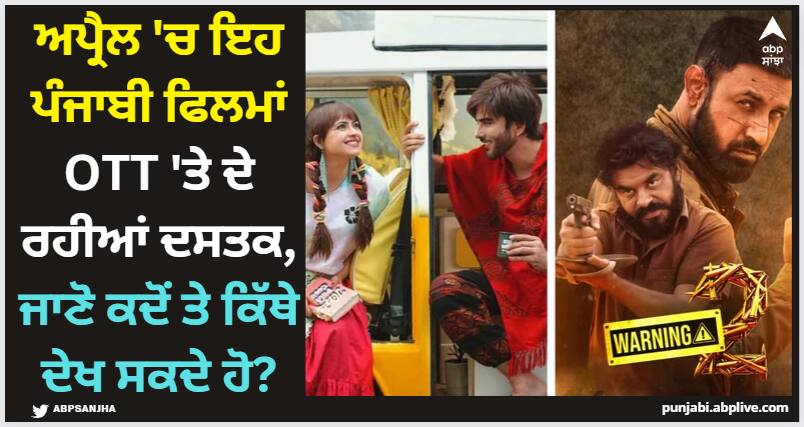 Punjabi Movies On OTT Releasing In April: ਮਾਰਚ ਦਾ ਮਹੀਨਾ ਖਤਮ ਹੋਣ ਵਾਲਾ ਹੈ। ਮਹਿਜ਼ 2 ਦਿਨਾਂ 'ਚ ਅਪ੍ਰੈਲ ਦਾ ਮਹੀਨਾ ਸ਼ੁਰੂ ਹੋ ਜਾਵੇਗਾ। ਅਪ੍ਰੈਲ 'ਚ ਪੰਜਾਬੀ ਫਿਲਮਾਂ ਦੇ ਸ਼ੌਕੀਨਾਂ ਲਈ ਚੰਗੀ ਖਬਰ ਆ ਰਹੀ ਹੈ। ਨਵੀਆਂ ਪੰਜਾਬੀ ਫਿਲਮਾਂ ਓਟੀਟੀ ਪਲੇਟਫਾਰਮ 'ਤੇ ਦਸਤਕ ਦੇਣ ਜਾ ਰਹੀਆਂ ਹਨ। ਜੇ ਤੁਸੀਂ ਇਹ ਫਿਲਮਾਂ ਥੀਏਟਰ 'ਚ ਨਹੀਂ ਦੇਖ ਸਕੇ ਤਾਂ ਹੁਣ ਘਰ ਬੈਠੇ ਦੇਖਣ ਦਾ ਵਧੀਆ ਮੌਕਾ ਹੈ, ਆਓ ਤੁਹਾਨੂੰ ਦੱਸਦੇ ਹਾਂ ਕਿਹੜੀਆਂ ਫਿਲਮਾਂ ਨੇ ਇਹ: