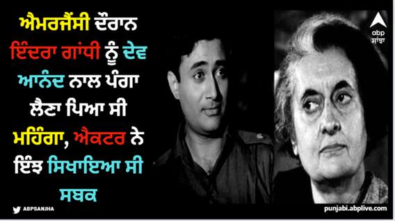 ਇੰਦਰਾ ਗਾਂਧੀ ਨੇ ਐਮਰਜੈਂਸੀ ਦੌਰਾਨ ਕਈ ਬਾਲੀਵੁੁੱਡ ਕਲਾਕਾਰਾਂ 'ਤੇ ਬੈਨ ਲਗਾ ਦਿੱਤਾ ਸੀ, ਜਿਨ੍ਹਾਂ ਵਿੱਚ ਕਿਸ਼ੋਰ ਕੁਮਾਰ ਤੇ ਸੰਜੀਵ ਕੁਮਾਰ ਵਰਗੇ ਸਟਾਰਜ਼ ਦੇ ਨਾਮ ਸ਼ਾਮਲ ਹਨ। ਇਨ੍ਹਾਂ ਵਿੱਚੋਂ ਇੱਕ ਨਾਮ ਬਾਲੀਵੁੱਡ ਸੁਪਰਸਟਾਰ ਦੇਵ ਆਨੰਦ ਦਾ ਵੀ ਸੀ।