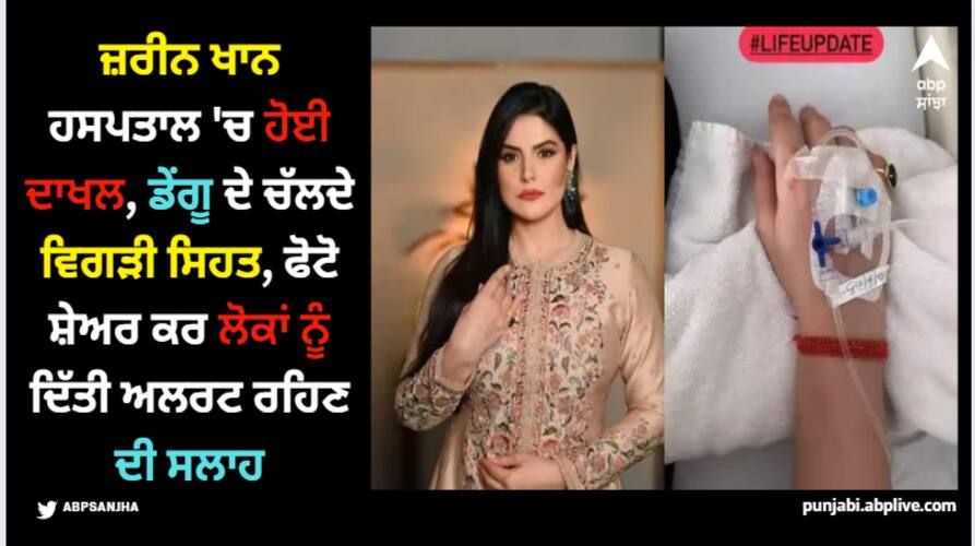 Zareen Khan Hospitalized: ਅਭਿਨੇਤਰੀ ਜ਼ਰੀਨ ਖਾਨ ਦੀ ਸਿਹਤ ਖਰਾਬ ਹੈ ਅਤੇ ਉਹ ਇਨ੍ਹੀਂ ਦਿਨੀਂ ਹਸਪਤਾਲ 'ਚ ਦਾਖਲ ਹੈ। ਅਦਾਕਾਰਾ ਨੂੰ ਡੇਂਗੂ ਹੋ ਗਿਆ ਹੈ ਅਤੇ ਉਹ ਤੇਜ਼ ਬੁਖਾਰ ਦੇ ਨਾਲ-ਨਾਲ ਸਰੀਰ ਦੇ ਦਰਦ ਤੋਂ ਵੀ ਪੀੜਤ ਹੈ। ਇਸ ਗੱਲ ਦੀ ਜਾਣਕਾਰੀ ਅਦਾਕਾਰਾ ਨੇ ਖੁਦ ਆਪਣੇ ਸੋਸ਼ਲ ਮੀਡੀਆ ਰਾਹੀਂ ਦਿੱਤੀ ਹੈ।