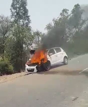 ਸੜਕ 'ਤੇ ਆਈ-20 ਕਾਰ 'ਚੋਂ ਨਿਕਲੇ ਭਾਂਬੜ, ਵੇਖੋ ਤਸਵੀਰਾਂ