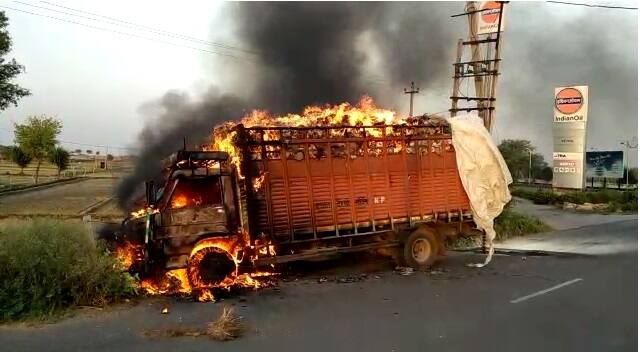 ਪੈਟਰੋਲ ਪੰਪ 'ਤੇ ਤੇਲ ਭਰਾਉਣ ਆਏ ਟਰੱਕ 'ਚ ਭੜਕੀ ਅੱਗ, ਵੇਖੋ ਤਸਵੀਰਾਂ