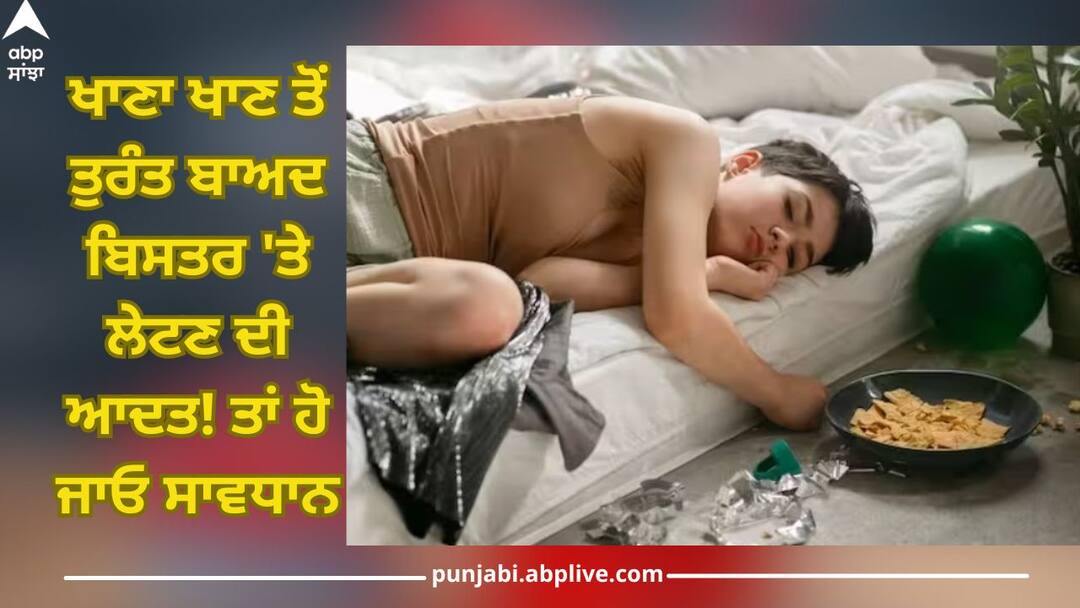 Sleep immediately after eating food: ਤਕਨੀਕੀ ਯੁੱਗ ਕਰਕੇ ਸਾਡੀਆਂ ਖਾਣ-ਪੀਣ ਤੋਂ ਲੈ ਕੇ ਸਰੀਰ ਸੰਬੰਧੀ ਬਹੁਤ ਸਾਰੀਆਂ ਆਦਤਾਂ ਖਰਾਬ ਹੋ ਗਈਆਂ ਹਨ। ਬਹੁਤ ਸਾਰੇ ਲੋਕ ਟੀਵੀ ਦੇਖਦੇ ਹੋਏ ਜਾਂ ਫਿਰ ਮੋਬਾਈਲ ਫੋਨ ਚਲਾਉਂਦੇ ਹੋਏ ਭੋਜਨ ਖਾਂਦੇ ਹਨ। ਅਜਿਹੀਆਂ ਆਦਤਾਂ ਕਰਕੇ ਸਰੀਰ ਜ਼ਿਆਦਾ ਥੱਕ ਜਾਂਦਾ ਹੈ। ਜਿਸ ਕਰਕੇ ਕੁਝ ਲੋਕਾਂ ਨੂੰ ਖਾਣਾ ਖਾਣ ਤੋਂ ਬਾਅਦ ਬਿਸਤਰ 'ਤੇ ਲੇਟਣ ਦੀ ਆਦਤ (Habit of lying down in bed after eating know its side effects) ਪੈ ਗਈ ਹੈ। ਜੇਕਰ ਤੁਸੀਂ ਵੀ ਖਾਣ ਤੋਂ ਬਾਅਦ ਲੇਟ ਜਾਂਦੇ ਹੋ ਤਾਂ ਸਾਵਧਾਨ ਹੋ ਜਾਓ। ਇਸ ਆਦਤ ਕਰਕੇ ਤੁਸੀਂ ਕਈ ਬਿਮਾਰੀਆਂ ਦਾ ਸ਼ਿਕਾਰ ਹੋ ਸਕਦੇ ਹੋ।