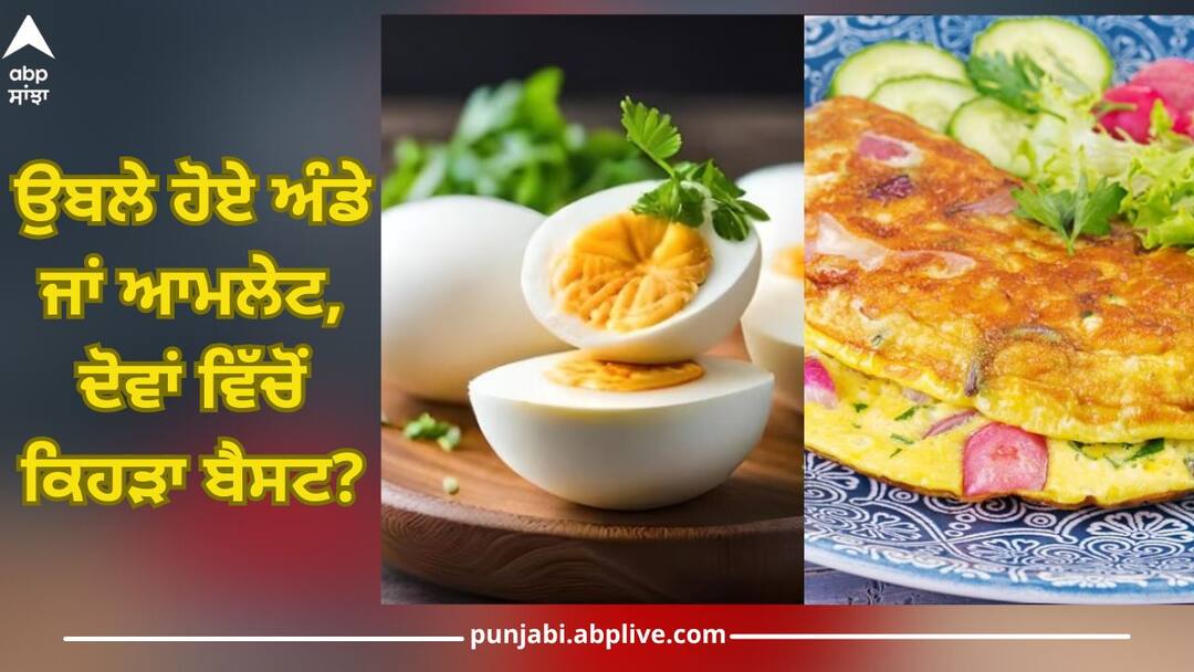 Boiled egg Vs Omelettes: ਅੰਡੇ ਦਾ ਸੇਵਨ ਸਿਹਤ ਲਈ ਵਧੀਆ ਹੁੰਦਾ ਹੈ। ਇਸ ਲਈ ਕਿਹਾ ਜਾਂਦਾ ਹੈ 'ਸੰਡੇ ਹੋ ਜਾਂ ਮੰਡੇ ਰੋਜ਼ ਖਾਓ ਅੰਡੇ'। ਅੰਡਾ ਇੱਕ ਅਜਿਹਾ ਭੋਜਨ ਹੈ ਜੋ ਸਾਨੂੰ ਜ਼ਰੂਰੀ ਪੌਸ਼ਟਿਕ ਤੱਤਾਂ ਨਾਲ ਭਰਪੂਰ ਬਣਾਉਂਦਾ ਹੈ। ਇਹ ਇੱਕ ਕੁਦਰਤੀ ਸਰੋਤ ਹੈ ਜੋ ਸਾਨੂੰ ਪ੍ਰੋਟੀਨ, ਵਿਟਾਮਿਨ ਅਤੇ ਖਣਿਜ ਵਰਗੇ ਮਹੱਤਵਪੂਰਨ ਪੌਸ਼ਟਿਕ ਤੱਤ ਪ੍ਰਦਾਨ ਕਰਦਾ ਹੈ। ਅੰਡੇ ਦਾ ਸੇਵਨ ਸਰੀਰਕ ਅਤੇ ਮਾਨਸਿਕ ਸਿਹਤ ਲਈ ਬਹੁਤ ਫਾਇਦੇਮੰਦ ਹੁੰਦਾ ਹੈ। ਪਰ ਲੋਕ ਇਸ ਗੱਲ ਨੂੰ ਲੈ ਕੇ ਭੰਬਲਭੂਸੇ ਵਿੱਚ ਰਹਿੰਦੇ ਹਨ ਕਿ ਉਬਲੇ ਹੋਏ ਅੰਡੇ ਜਾਂ ਆਮਲੇਟ (Boiled egg or omelettes ) ਕਿਹੜਾ ਸਿਹਤ ਲਈ ਫਾਇਦੇਮੰਦ ਹੁੰਦਾ ਹੈ? ਆਓ ਜਾਣਦੇ ਹਾਂ ਦੋਵਾਂ ਵਿੱਚੋਂ ਕਿਹੜਾ ਬੈਸਟ ਹੈ...