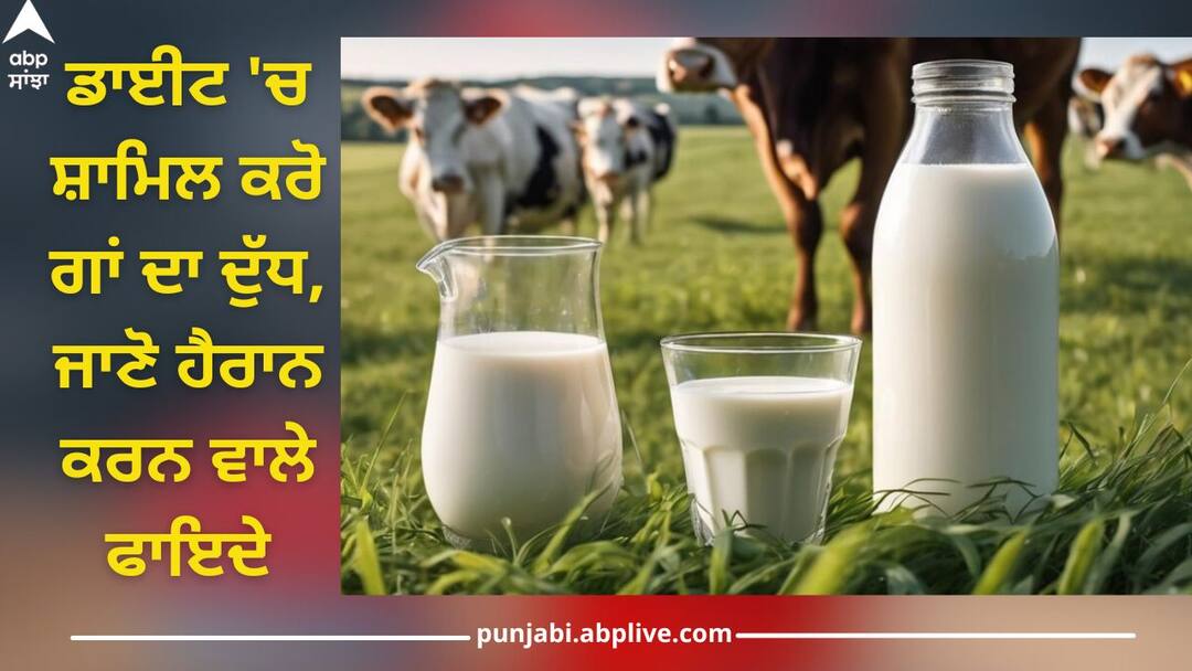 Cow Milk benefits: ਬਜ਼ੁਰਗਾਂ ਅਤੇ ਮਾਹਿਰਾਂ ਦਾ ਮੰਨਣਾ ਹੈ ਕਿ ਦੁੱਧ ਪੀਣਾ ਸਿਹਤ ਲਈ ਬਹੁਤ ਫਾਇਦੇਮੰਦ ਹੁੰਦਾ ਹੈ। ਇਸ ਲਈ ਬੱਚੇ ਤੋਂ ਲੈ ਕੇ ਵੱਡੀ ਉਮਰ ਵਾਲੇ ਸਾਰੇ ਹੀ ਦੁੱਧ ਦਾ ਸੇਵਨ ਕਰਦੇ ਹਨ। ਦੁੱਧ ਨੂੰ ਪੀਣ ਨਾਲ ਸਰੀਰ ਤਾਕਤਵਰ ਅਤੇ ਊਰਜਾਵਾਨ ਰਹਿੰਦਾ ਹੈ। ਤੁਸੀਂ ਅਕਸਰ ਡੇਅਰੀ ਦੁੱਧ ਪੀਤਾ ਹੋਵੇਗਾ। ਪਰ ਕੀ ਤੁਸੀਂ ਜਾਣਦੇ ਹੋ ਕਿ ਗਾਂ ਦਾ ਤਾਜ਼ਾ ਦੁੱਧ ਸਿਹਤ ਲਈ ਕਿੰਨਾ ਫਾਇਦੇਮੰਦ ਹੈ? ਜੇਕਰ ਨਹੀਂ ਤਾਂ ਇਹ ਖਬਰ ਤੁਹਾਡੇ ਲਈ ਹੈ। ਅੱਜ ਅਸੀਂ ਤੁਹਾਨੂੰ ਦੱਸਾਂਗੇ ਕਿ ਗਾਂ ਦੇ ਦੁੱਧ ਦਾ ਸੇਵਨ ਕਰਨ ਨਾਲ ਤੁਸੀਂ ਅਣਗਿਣਤ ਫਾਇਦੇ ਪ੍ਰਾਪਤ ਕਰ ਸਕਦੇ ਹੋ (consuming cow's milk you can get countless benefits)।