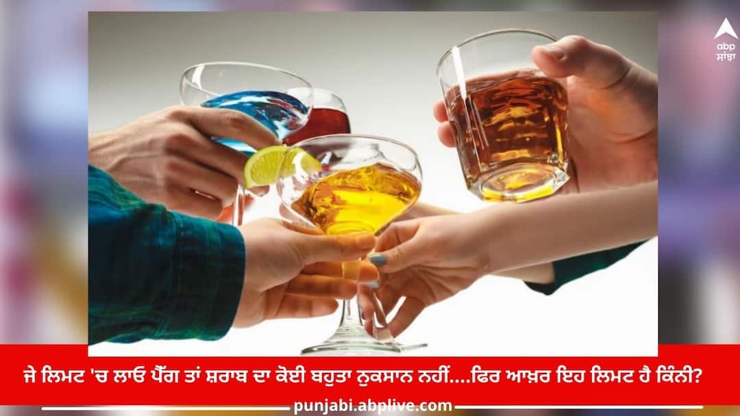 Alcohol drinking limit: ਸ਼ਰਾਬ ਸਮਾਜਿਕ ਜੀਵਨ ਦਾ ਹਿੱਸਾ ਬਣਦੀ ਜਾ ਰਹੀ ਹੈ। ਸ਼ਰਾਬ ਪੀਣ ਦੇ ਵੱਖੋ-ਵੱਖਰੇ ਕਾਰਨ ਹਨ...ਕੋਈ ਆਪਣੇ ਦੁੱਖ ਭੁਲਾਉਣ ਲਈ ਸ਼ਰਾਬ ਪੀਂਦਾ ਹੈ ਤੇ ਕੋਈ ਖੁਸ਼ੀ ਦਾ ਇਜ਼ਹਾਰ ਕਰਨ ਜਾਂ ਪਾਰਟੀ ਦਾ ਆਨੰਦ ਲੈਣ ਲਈ ਪੈੱਗ ਲਾਉਂਦਾ ਹੈ। ਬਹੁਤ ਸਾਰੇ ਲੋਕ ਮੰਨਦੇ ਹਨ ਕਿ ਸ਼ਰਾਬ ਸਰੀਰ ਨੂੰ ਆਰਾਮ ਦਿੰਦੀ ਹੈ ਤੇ ਤਣਾਅ ਨੂੰ ਦੂਰ ਕਰਦੀ ਹੈ, ਪਰ ਇਹ ਗੱਲ ਤੈਅ ਹੈ ਕਿ ਸ਼ਰਾਬ ਸਰੀਰ ਲਈ ਹਾਨੀਕਾਰਕ ਹੈ। ਅਲਕੋਹਲ ਦੇ ਨੁਕਸਾਨ ਨਾਲ ਸਬੰਧਤ ਬਹੁਤ ਸਾਰੀਆਂ ਰਿਪੋਰਟਾਂ ਵਿੱਚ, ਕੁਝ ਅਜਿਹੀਆਂ ਰਿਪੋਰਟਾਂ ਵੀ ਹਨ ਜੋ ਦਾਅਵਾ ਕਰਦੀਆਂ ਹਨ ਕਿ ਜੇਕਰ ਸੀਮਤ ਮਾਤਰਾ ਵਿੱਚ ਅਲਕੋਹਲ ਦਾ ਸੇਵਨ ਕੀਤਾ ਜਾਂਦਾ ਹੈ ਤਾਂ ਇਹ ਸਿਹਤ ਨੂੰ ਨੁਕਸਾਨ ਨਹੀਂ ਪਹੁੰਚਾਉਂਦਾ ਜਾਂ ਫਿਰ ਘੱਟ ਪਹੁੰਚਾਉਂਦਾ ਹੈ।