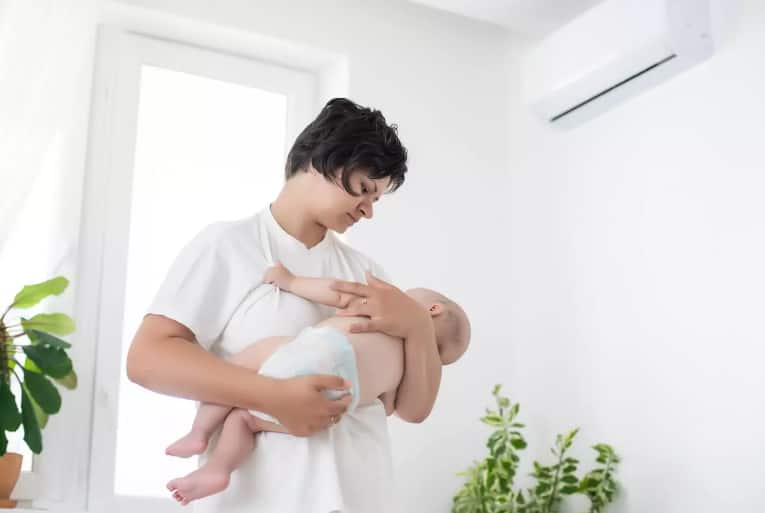 ਬੱਚੇ ਨੂੰ ਪਹਿਲੀ ਵਾਰ AC ਵਿੱਚ ਸੌਂਦੇ ਸਮੇਂ AC ਦਾ ਤਾਪਮਾਨ 25 ਤੋਂ 28 ਡਿਗਰੀ ਸੈਲਸੀਅਸ ਦੇ ਵਿਚਕਾਰ ਰੱਖਣਾ ਚਾਹੀਦਾ ਹੈ। ਧਿਆਨ ਰੱਖੋ, ਜਿਸ ਕਮਰੇ ਵਿੱਚ ਨਵਜੰਮਿਆ ਬੱਚਾ ਸੌਂ ਰਿਹਾ ਹੈ, ਉਸ ਦਾ ਤਾਪਮਾਨ ਬਹੁਤ ਜ਼ਿਆਦਾ ਠੰਡਾ ਨਹੀਂ ਹੋਣਾ ਚਾਹੀਦਾ।