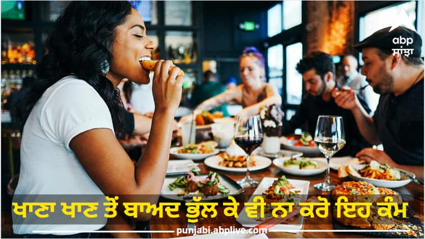 Bad Food Habits: ਭੋਜਨ ਖਾਣ ਨਾਲ ਜੁੜੀਆਂ ਗਲਤੀਆਂ ਦਾ ਪੇਟ ਦੀ ਸਿਹਤ ਤੇ ਵਜ਼ਨ ਦੋਵਾਂ 'ਤੇ ਬੁਰਾ ਪ੍ਰਭਾਵ ਪੈਂਦਾ ਹੈ। ਇਨ੍ਹਾਂ ਗਲਤੀਆਂ ਕਾਰਨ ਬਦਹਜ਼ਮੀ, ਪੇਟ ਫੁੱਲਣਾ, ਐਸੀਡਿਟੀ, ਪੇਟ ਦਰਦ, ਜੀਅ ਕੱਚਾ ਹੋਣਾ, ਗੈਸ ਬਣਨਾ ਤੇ ਪੇਟ ਖਰਾਬ ਹੋਣ ਵਰਗੀਆਂ ਸਮੱਸਿਆਵਾਂ ਵਧ ਸਕਦੀਆਂ ਹਨ। ਇੰਨਾ ਹੀ ਨਹੀਂ ਕਈ ਵਾਰ ਇਹ ਕੈਂਸਰ ਵਰਗੀਆਂ ਬੀਮਾਰੀਆਂ ਦਾ ਵੀ ਕਾਰਨ ਬਣ ਸਕਦਾ ਹੈ। ਇਸ ਲਈ ਖਾਣਾ ਖਾਣ ਤੋਂ ਤੁਰੰਤ ਬਾਅਦ ਕੁਝ ਚੀਜ਼ਾਂ ਤੋਂ ਪ੍ਰਹੇਜ਼ ਕਰਨਾ ਚਾਹੀਦਾ ਹੈ। ਖਾਣਾ ਖਾਣ ਦੇ ਤੁਰੰਤ ਬਾਅਦ ਇਹ ਚੀਜ਼ਾਂ ਨਹੀਂ ਕਰਨੀਆਂ ਚਾਹੀਦੀਆਂ।