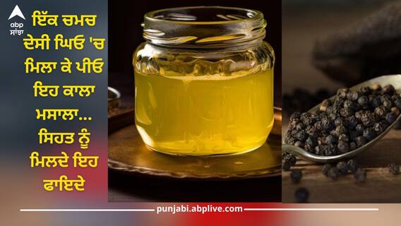 Black Pepper And Desi Ghee: ਸਦੀਆਂ ਤੋਂ ਲੋਕ ਘਿਓ ਦਾ ਸੇਵਨ ਕਰਦੇ ਆ ਰਹੇ ਹਨ, ਇਹ ਨਾ ਸਿਰਫ ਭੋਜਨ ਦਾ ਸੁਆਦ ਵਧਾਉਂਦਾ ਹੈ, ਸਗੋਂ ਇਹ ਸਾਡੀ ਸਿਹਤ ਲਈ ਵੀ ਬਹੁਤ ਫਾਇਦੇਮੰਦ ਮੰਨਿਆ ਜਾਂਦਾ ਹੈ। ਇਸ ਵਿਚ ਕੈਰੋਟੀਨ, ਵਿਟਾਮਿਨ ਏ, ਸੀ, ਫਲੇਵੋਨੋਇਡ ਅਤੇ ਐਂਟੀਆਕਸੀਡੈਂਟ ਗੁਣ ਪਾਏ ਜਾਂਦੇ ਹਨ ਜੋ ਸਿਹਤ ਨਾਲ ਜੁੜੀਆਂ ਕਈ ਸਮੱਸਿਆਵਾਂ ਵਿਚ ਅਸਰਦਾਰ ਹਨ। ਦੇਸੀ ਘਿਓ ਹੱਡੀਆਂ ਨੂੰ ਮਜ਼ਬੂਤ ਕਰਨ ਦੇ ਲਈ ਵੀ ਫਾਇਦੇਮੰਦ ਹੁੰਦਾ ਹੈ। ਪਰ ਜੇਕਰ ਤੁਸੀਂ ਦੇਸੀ ਘਿਓ ਨੂੰ ਇੱਕ ਕਾਲੇ ਮਸਾਲੇ ਦੇ ਨਾਲ ਮਿਲਾ ਕੇ ਖਾਉਂਦੇ ਹੋ ਤਾਂ ਇਸਦੇ ਫਾਇਦੇ ਦੋਗੁਣਾ ਹੋ ਜਾਂਦਾ ਹੈ।