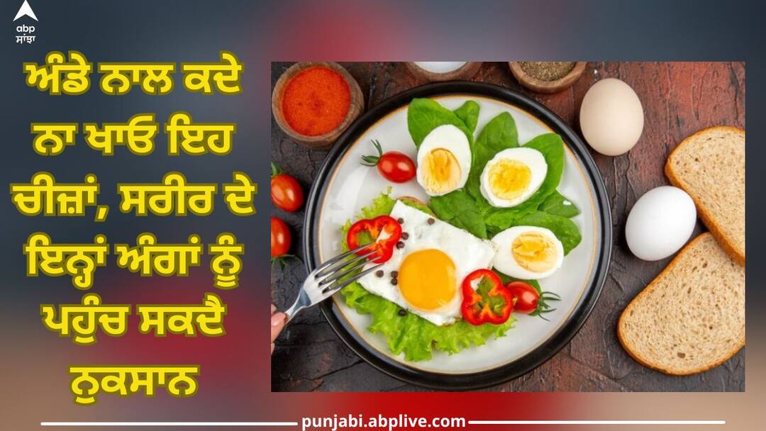 Avoid Eating These Foods with Eggs: ਅੰਡੇ ਵਿੱਚ ਕਈ ਤਰ੍ਹਾਂ ਦੇ ਪੋਸ਼ਕ ਤੱਤ ਹੁੰਦੇ ਹਨ ਜੋ ਸਾਡੀ ਸਿਹਤ ਲਈ ਬਹੁਤ ਫਾਇਦੇਮੰਦ ਹੁੰਦੇ ਹਨ। ਪ੍ਰੋਟੀਨ ਨਾਲ ਭਰਪੂਰ ਅੰਡੇ (Eggs rich in protein) ਨੂੰ ਮਾਸਪੇਸ਼ੀਆਂ ਲਈ ਬਹੁਤ ਵਧੀਆ ਮੰਨਿਆ ਜਾਂਦਾ ਹੈ। ਅੰਡੇ ਖਾਣ ਨਾਲ ਦਿਲ ਵੀ ਸਿਹਤਮੰਦ ਰਹਿੰਦਾ ਹੈ। ਪੋਸ਼ਣ ਅਤੇ ਪਾਵਰਹਾਊਸ ਨਾਲ ਭਰਪੂਰ ਅੰਡਾ ਨਾਸ਼ਤੇ ਵਿੱਚ ਖਾਣ ਲਈ ਸਭ ਤੋਂ ਵਧੀਆ ਚੀਜ਼ ਹੈ। ਤੁਸੀਂ ਅੰਡੇ ਕਿਸੇ ਵੀ ਤਰੀਕੇ ਨਾਲ ਖਾ ਸਕਦੇ ਹੋ, ਚਾਹੇ ਉਹ ਉਬਾਲੇ ਹੋਏ, ਆਮਲੇਟ ਜਾਂ ਕਿਸੇ ਹੋਰ ਤਰੀਕੇ ਨਾਲ।