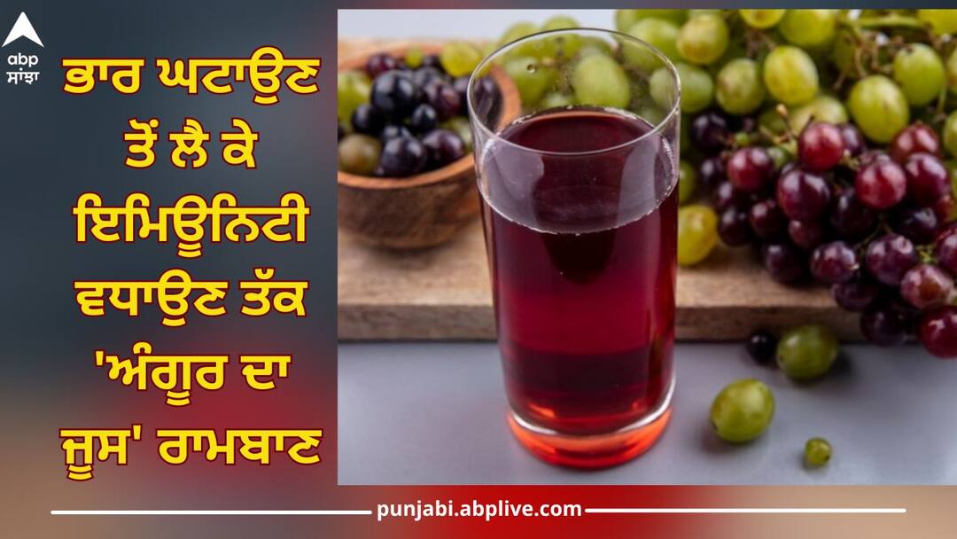 ਅੰਗੂਰ ਦਾ ਜੂਸ ਕਬਜ਼, ਬਦਹਜ਼ਮੀ, ਥਕਾਵਟ ਵਰਗੀਆਂ ਸਿਹਤ ਸੰਬੰਧੀ ਸਮੱਸਿਆਵਾਂ ਨੂੰ ਦੂਰ ਕਰਨ ਵਿੱਚ ਮਦਦ ਕਰਦਾ ਹੈ। ਇੰਨਾ ਹੀ ਨਹੀਂ, ਇਹ ਅੰਗੂਰ ਤੁਹਾਡੇ ਪਕਵਾਨਾਂ ਦਾ ਸੁਆਦ ਵਧਾਉਂਦਾ ਹੈ ਅਤੇ ਭਾਰ ਘਟਾਉਣ ਵਿੱਚ ਵੀ ਤੁਹਾਡੀ ਮਦਦ ਕਰਦਾ ਹੈ।