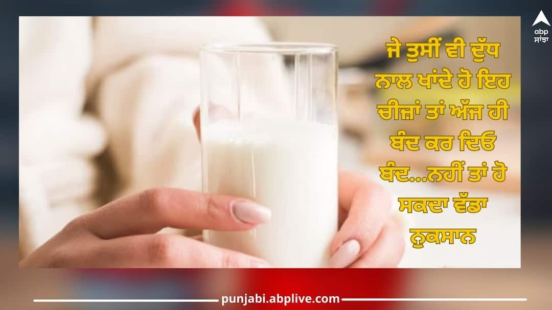 Don't eat these things with milk: ਚੰਗੀ ਸਿਹਤ ਲਈ ਦੁੱਧ ਦਾ ਸੇਵਨ ਬਹੁਤ ਜ਼ਰੂਰੀ ਹੈ। ਬੱਚਿਆਂ ਦੇ ਚੰਗੇ ਸਰੀਰਕ ਤੇ ਮਾਨਸਿਕ ਵਿਕਾਸ ਲਈ ਦੁੱਧ ਬੇਹੱਦ ਅਹਿਮ ਹੈ। ਇਹ ਕੈਲਸ਼ੀਅਮ ਤੇ ਵਿਟਾਮਿਨ ਡੀ ਨਾਲ ਭਰਪੂਰ ਹੁੰਦਾ ਹੈ, ਜੋ ਸਾਡੀਆਂ ਹੱਡੀਆਂ ਦੇ ਵਿਕਾਸ ਤੇ ਮਜ਼ਬੂਤੀ ਲਈ ਬਹੁਤ ਮਹੱਤਵਪੂਰਨ ਮੰਨਿਆ ਜਾਂਦਾ ਹੈ। ਇਸ ਤੋਂ ਇਲਾਵਾ ਦੁੱਧ ਵਿੱਚ ਹੋਰ ਤੱਤ ਵੀ ਭਰਪੂਰ ਹੁੰਦੇ ਹਨ। ਇਸ ਲਈ ਹੀ ਦੁੱਧ ਨੂੰ ਸੰਪੂਰਨ ਭੋਜਨ ਕਿਹਾ ਜਾਂਦਾ ਹੈ।
