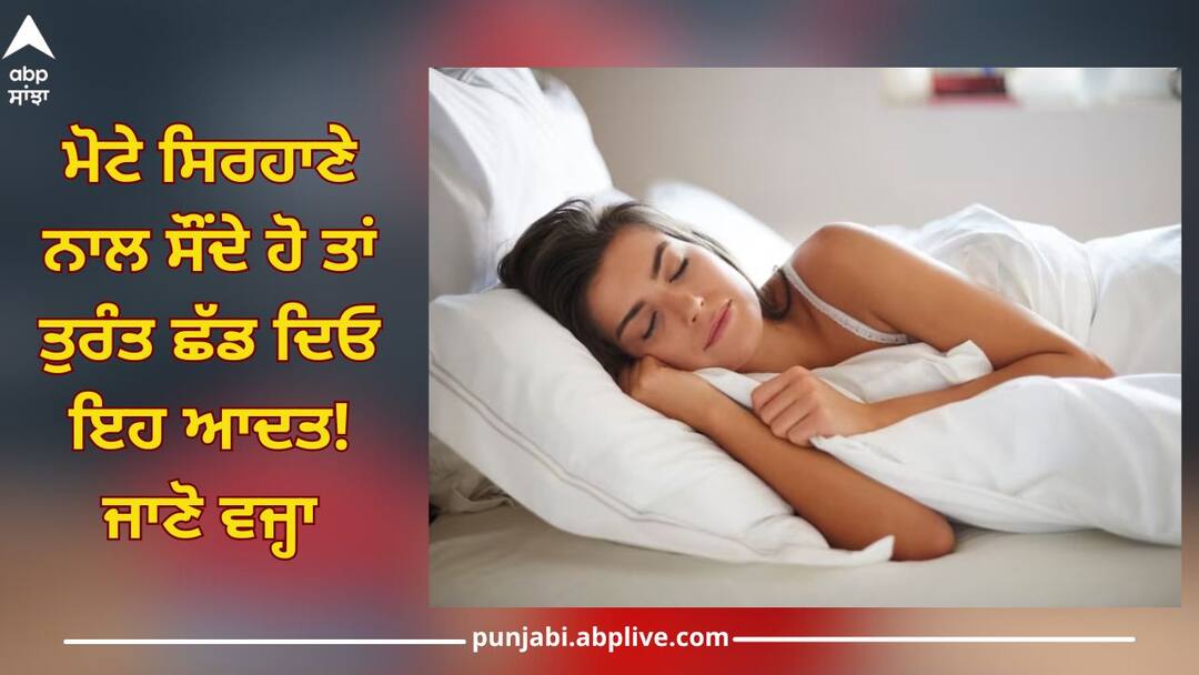 Heavy Pillow Side Effects: ਚੰਗੀ ਸਿਹਤ ਲਈ ਲੋੜੀਂਦੀ ਨੀਂਦ ਲੈਣਾ ਜ਼ਰੂਰੀ ਹੈ। ਜੇਕਰ ਤੁਸੀਂ ਚੰਗੀ ਨੀਂਦ ਲੈ ਰਹੇ ਹੋ ਤਾਂ ਤੁਸੀਂ ਕਈ ਬਿਮਾਰੀਆਂ ਤੋਂ ਬਚ ਸਕਦੇ ਹੋ। ਇਸ ਤੋਂ ਇਲਾਵਾ ਤੁਸੀਂ ਆਪਣੇ ਰੋਜ਼ਾਨਾ ਦੇ ਜੀਵਨ ਦੀਆਂ ਕਈ ਚੀਜ਼ਾਂ ਨੂੰ ਬਿਨਾਂ ਥੱਕ ਅਤੇ ਤਣਾਅ ਤੋਂ ਕਰ ਸਕਦੇ ਹੋ। ਹਾਲਾਂਕਿ, ਚੰਗੀ ਨੀਂਦ ਲਈ ਇੱਕ ਆਰਾਮਦਾਇਕ ਬਿਸਤਰਾ ਅਤੇ ਨਰਮ ਸਿਰਹਾਣੇ ਦੀ ਲੋੜ ਹੁੰਦੀ ਹੈ। ਕਈ ਲੋਕ ਸਿਰਹਾਣੇ ਤੋਂ ਬਿਨਾਂ ਸੌਂ ਨਹੀਂ ਸਕਦੇ। ਕਈ ਲੋਕ ਮੋਟੇ ਸਿਰਹਾਣੇ ਦੀ ਵਰਤੋਂ ਕਰਦੇ ਹਨ ਜਾਂ ਇੱਕ ਤੋਂ ਵੱਧ ਸਿਰਹਾਣੇ ਨਾਲ ਸੌਂਦੇ ਹਨ। ਇਸ ਨਾਲ ਉਨ੍ਹਾਂ ਨੂੰ ਚੰਗੀ ਨੀਂਦ ਆਉਂਦੀ ਹੈ। ਪਰ ਕੀ ਤੁਸੀਂ ਜਾਣਦੇ ਹੋ ਕਿ ਅਜਿਹਾ ਕਰਨ ਸਿਹਤ ਲਈ ਸਹੀ ਨਹੀਂ ਹੈ। ਇਸ ਨਾਲ ਵਿਅਕਤੀ ਨੂੰ ਕਈ ਸਿਹਤ ਸਮੱਸਿਆਵਾਂ ਹੋ ਸਕਦੀਆਂ ਹਨ। ਮੋਟੇ ਸਿਰਹਾਣੇ ਦੀ ਵਰਤੋਂ ਨਾ ਸਿਰਫ਼ ਤੁਹਾਡੀ ਗਰਦਨ ਨੂੰ ਪ੍ਰਭਾਵਿਤ ਕਰਦੀ ਹੈ ਬਲਕਿ ਇਹ ਤੁਹਾਡੀ ਸੁੰਦਰਤਾ ਨੂੰ ਵੀ ਪ੍ਰਭਾਵਿਤ ਕਰਦੀ ਹੈ। ਆਓ ਜਾਣਦੇ ਹਾਂ ਮੋਟੇ ਸਿਰਹਾਣੇ ਦੇ ਮਾੜੇ ਪ੍ਰਭਾਵ ਬਾਰੇ (Heavy pillow may causes health problems)...