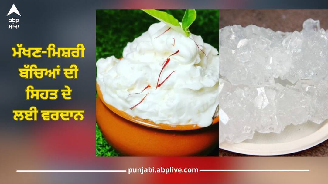 Makhan-Mishri Benefits: ਮੱਖਣ-ਮਿਸ਼ਰੀ ਸਿਹਤ ਦੇ ਲਈ ਕਿਸੇ ਅੰਮ੍ਰਿਤ ਤੋਂ ਘੱਟ ਨਹੀਂ ਹੈ। ਇਸ ਦੇ ਸੇਵਨ ਨਾਲ ਸਿਹਤ ਨੂੰ ਕਈ ਤਰ੍ਹਾਂ ਦੇ ਫਾਇਦੇ ਮਿਲਦੇ ਹਨ। ਜੇਕਰ ਇਸ ਨੂੰ ਬੱਚਿਆਂ ਨੂੰ ਖੁਆਇਆ ਜਾਵੇ ਤਾਂ ਇਹ ਬਹੁਤ ਫਾਇਦੇਮੰਦ ਹੁੰਦਾ ਹੈ। ਜਾਣੋ ਮੱਖਣ-ਮਿਸ਼ਰੀ (Makhan Mishri) ਨੂੰ ਖਾਣ ਨਾਲ ਸਰੀਰ 'ਤੇ ਕੀ ਪ੍ਰਭਾਵ ਪੈਂਦਾ ਹੈ। ਆਯੁਰਵੇਦ ਵਿੱਚ ਮੱਖਣ ਅਤੇ ਮਿਸ਼ਰੀ ਦੇ ਸੇਵਨ ਨਾਲ ਮਿਲਣ ਵਾਲੇ ਫਾਇਦਿਆਂ ਬਾਰੇ ਦੱਸਿਆ ਗਿਆ ਹੈ।