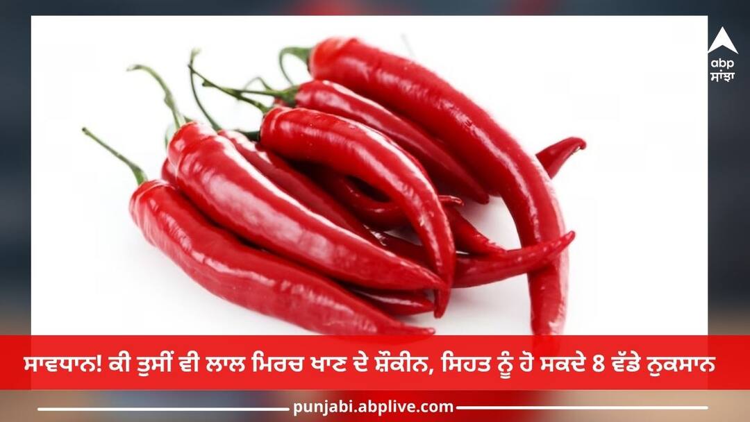 Red Chilli Disadvantages : ਲਾਲ ਮਿਰਚ ਸਾਡੀ ਰਸੋਈ ਦਾ ਅਹਿਮ ਹਿੱਸਾ ਹੁੰਦੀ ਹੈ। ਇਸ ਤੋਂ ਬਿਨਾਂ ਕਈ ਪਕਵਾਨਾਂ ਦਾ ਸਵਾਦ ਹੀ ਨਹੀਂ ਆਉਂਦਾ। ਅਸੀਂ ਇਸ ਨੂੰ ਦਾਲਾਂ ਤੋਂ ਲੈ ਕੇ ਸਬਜ਼ੀਆਂ ਤੱਕ ਹਰ ਚੀਜ਼ 'ਚ ਸ਼ਾਮਲ ਕਰਦੇ ਹਾਂ। ਲਾਲ ਮਿਰਚ ਨੂੰ ਵਿਟਾਮਿਨ ਤੇ ਖਣਿਜਾਂ ਦਾ ਭਰਪੂਰ ਸਰੋਤ ਮੰਨਿਆ ਜਾਂਦਾ ਹੈ, ਪਰ ਇਸ ਨੂੰ ਸੀਮਤ ਮਾਤਰਾ ਵਿੱਚ ਹੀ ਖਾਣਾ ਚਾਹੀਦਾ ਹੈ। ਖਾਸ ਕਰਕੇ ਲਾਲ ਮਿਰਚ ਦਾ ਪਾਊਡਰ ਸਿਹਤ ਲਈ ਥੋੜ੍ਹਾ ਖਤਰਨਾਕ ਹੁੰਦਾ ਹੈ। ਆਓ ਜਾਣਦੇ ਹਾਂ ਜੇਕਰ ਤੁਸੀਂ ਜ਼ਿਆਦਾ ਲਾਲ ਮਿਰਚ ਖਾਂਦੇ ਹੋ ਤਾਂ ਸਿਹਤ ਨੂੰ ਕੀ ਨੁਕਸਾਨ ਹੋ ਸਕਦੇ ਹਨ।