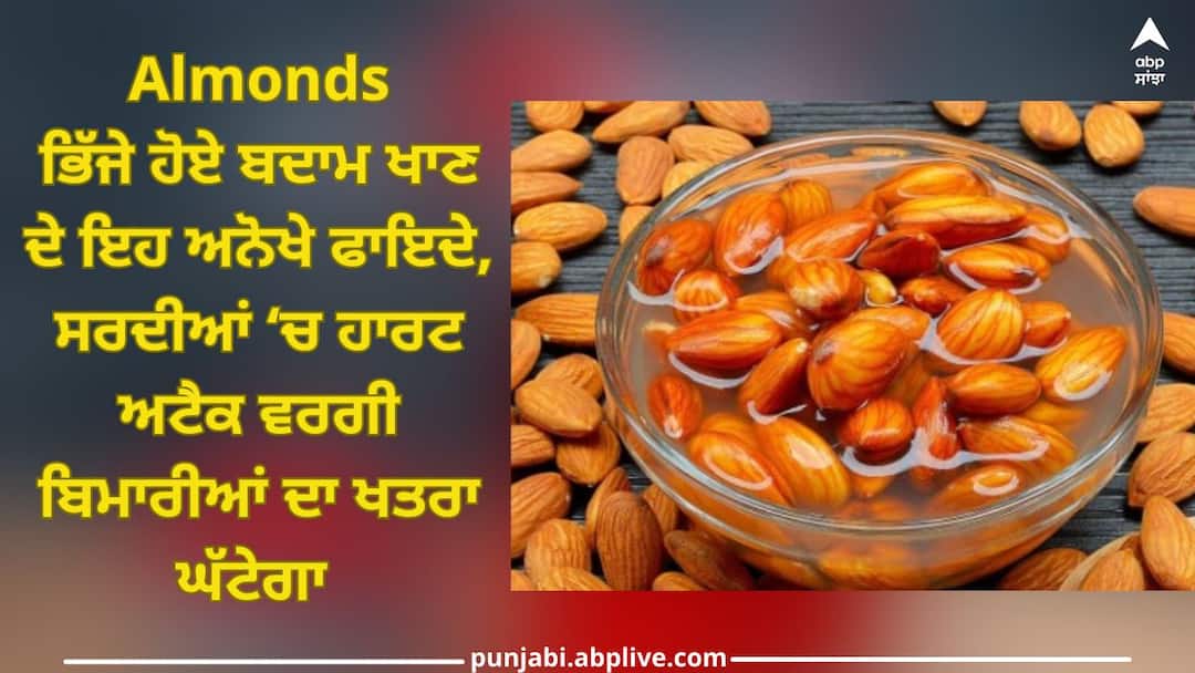 Soaked Almonds benefits: ਸਰਦੀਆਂ ਦੇ ਵਿੱਚ ਸੁੱਕੇ ਮਾਵਿਆਂ ਦੀ ਜ਼ਿਆਦਾ ਵਰਤੋਂ ਕੀਤੀ ਜਾਂਦੀ ਹੈ। ਜਿਸ ਨਾਲ ਠੰਡ ਦੇ ਵਿੱਚ ਸਰੀਰ ਨੂੰ ਗਰਮੀ ਦੇ ਨਾਲ ਕਈ ਫਾਇਦੇ ਵੀ ਹਾਸਿਲ ਹੁੰਦੇ ਹਨ। ਜਿਵੇਂ ਕਿ ਤੁਹਾਨੂੰ ਪਤਾ ਹੀ ਹੈ ਕਿ ਸੁੱਕੇ ਮੇਵੇ ਸਿਹਤ ਲਈ ਕਿੰਨੇ ਫਾਇਦੇਮੰਦ ਹੁੰਦੇ ਹਨ। ਜੇਕਰ ਇਨ੍ਹਾਂ ਸੁੱਕੇ ਮੇਵਿਆਂ ਨੂੰ ਭਿਉਂ ਕੇ ਖਾਧਾ ਜਾਵੇ ਤਾਂ ਇਨ੍ਹਾਂ ਦੇ ਫਾਇਦੇ ਦੁੱਗਣੇ ਹੋ ਜਾਂਦੇ ਹਨ। ਜੇਕਰ ਬਦਾਮ ਨੂੰ ਭਿਉਂ (soaked almonds) ਕੇ ਖਾਧਾ ਜਾਵੇ ਤਾਂ ਫਾਇਦੇ ਵੱਧ ਜਾਂਦੇ ਹਨ। ਭਿਉਂ ਹੋਏ ਬਦਾਮ ਖਾਣਾ ਦਿਲ ਦੀ ਸਿਹਤ (heart health) ਲਈ ਕਾਫੀ ਫਾਇਦੇਮੰਦ ਹੁੰਦਾ ਹੈ। ਆਓ ਜਾਣਦੇ ਹਾਂ....
