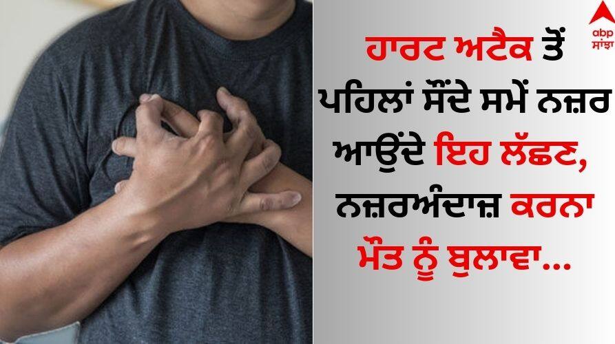 Heart Attack Sign: ਦੁਨੀਆ ਭਰ 'ਚ ਦਿਲ ਦੇ ਮਰੀਜ਼ਾਂ ਦੀ ਗਿਣਤੀ ਤੇਜ਼ੀ ਨਾਲ ਵਧ ਰਹੀ ਹੈ। ਦੱਸ ਦੇਈਏ ਕਿ ਖੇਡ ਜਗਤ ਤੋਂ ਲੈ ਕੇ ਬਾਲੀਵੁੱਡ ਇੰਡਸਟਰੀ ਵਿੱਚ ਅਜਿਹੇ ਕਈ ਸਿਤਾਰੇ ਹਨ, ਜੋ ਹਾਰਟ ਅਟੈਕ ਦਾ ਸ਼ਿਕਾਰ ਹੋਏ। ਇਸ ਦੌਰਾਨ ਕਈਆਂ ਦੀ ਜਾਨ ਬੱਚ ਗਈ, ਪਰ ਕਈ ਇਸ ਦੁਨੀਆਂ ਨੂੰ ਅਲਵਿਦਾ ਕਹਿ ਗਏ। ਦਿਲ ਦਾ ਦੌਰਾ ਪੈਣ ਸਮੇਂ ਖਾਣ-ਪੀਣ ਦੀਆਂ ਆਦਤਾਂ 'ਚ ਬਦਲਾਅ ਅਤੇ ਸਰੀਰਕ ਗਤੀਵਿਧੀ ਦੀ ਕਮੀ ਦੇਖਣ ਨੂੰ ਮਿਲਦੀ ਹੈ।