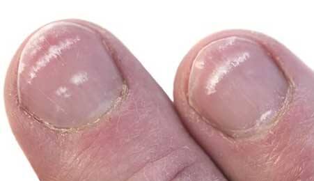 ਫੰਗਲ ਇਨਫੈਕਸ਼ਨ (Fungal infection) ਇਹ ਹੈ ਕਿ ਵਾਤਾਵਰਣ ਦੇ ਰੋਗਾਣੂ (Germs) ਤੁਹਾਡੇ ਨਹੁੰਆਂ ਜਾਂ ਇਸ ਦੇ ਆਲੇ-ਦੁਆਲੇ ਦੀ ਚਮੜੀ ਦੀਆਂ ਛੋਟੀਆਂ ਤਰੇੜਾਂ ਰਾਹੀਂ ਦਾਖਲ ਹੁੰਦੇ ਹਨ, ਜਿਸ ਕਾਰਨ ਫੰਗਲ ਇਨਫੈਕਸ਼ਨ ਹੋਣ ਦੀ ਸੰਭਾਵਨਾ ਵੱਧ ਜਾਂਦੀ ਹੈ। ਜਿਸ ਕਾਰਨ ਨਹੁੰ ਟੁੱਟਣ ਲੱਗ ਜਾਂਦੇ ਹਨ ਅਤੇ ਪੀਲੇ ਪੈ ਜਾਂਦੇ ਹਨ। ਜੇਕਰ ਦਾਗ-ਧੱਬੇ ਦਿਖਾਈ ਦੇਣ ਤਾਂ ਤੁਹਾਡੇ ਸਰੀਰ ਵਿੱਚ ਕੈਲਸ਼ੀਅਮ (calcium) ਜਾਂ ਜ਼ਿੰਕ ਵਰਗੇ ਖਣਿਜਾਂ ਦੀ ਕਮੀ ਹੈ। ਅਸਲ ਵਿੱਚ ਨਹੁੰ ਕੁਝ ਪੌਸ਼ਟਿਕ ਤੱਤਾਂ (Nutrients) ਨਾਲ ਬਣੇ ਹੁੰਦੇ ਹਨ, ਜਿਸ ਕਾਰਨ ਨਹੁੰਆਂ ਵਿੱਚ ਸਫ਼ੈਦ ਧੱਬੇ ਨਜ਼ਰ (See white spots) ਆਉਣ ਲੱਗ ਪੈਂਦੇ ਹਨ।