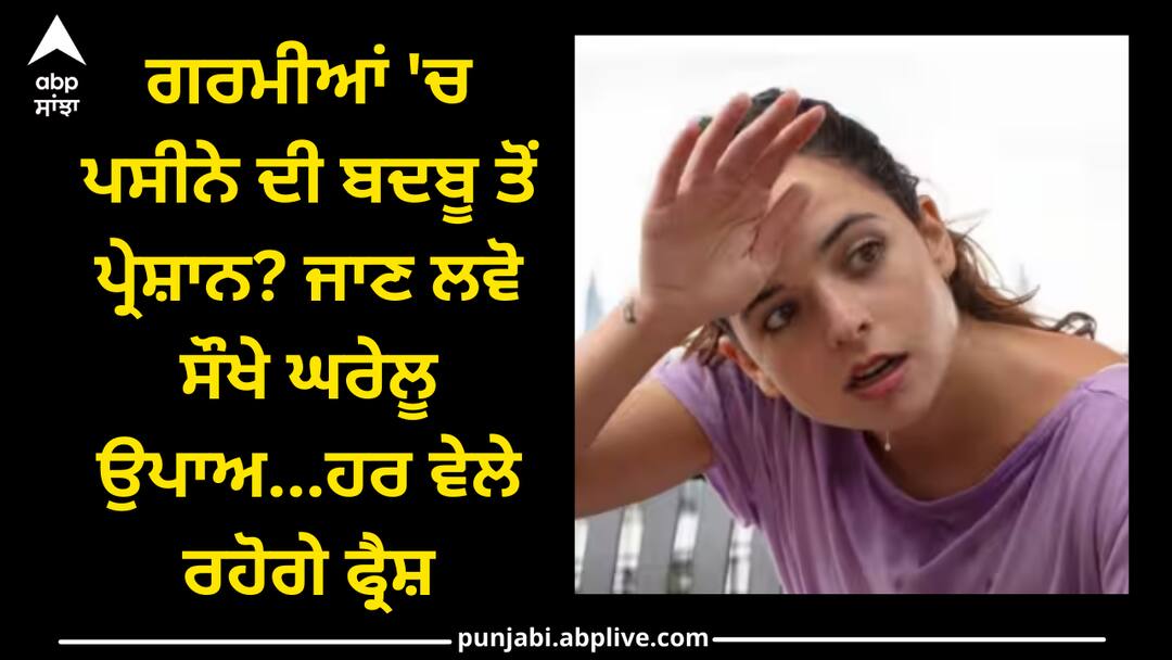 ਪਸੀਨੇ ਕਾਰਨ ਵਿਅਕਤੀ ਅੰਦਰ ਚਿੜਚਿੜਾਪਨ ਵਧ ਜਾਂਦੀ ਹੈ ਤੇ ਉਹ ਕਿਸੇ ਨਾਲ ਵੀ ਠੀਕ ਤਰ੍ਹਾਂ ਨਾਲ ਗੱਲ ਕਰਨ ਤੋਂ ਕਤਰਾਉਂਦਾ ਹੈ। ਅੱਜ ਇਸ ਰਿਪੋਰਟ 'ਚ ਅਸੀਂ ਤੁਹਾਨੂੰ ਕੁਝ ਅਜਿਹੇ ਉਪਾਵਾਂ ਬਾਰੇ ਦੱਸਾਂਗੇ ਜਿਨ੍ਹਾਂ ਨਾਲ ਤੁਸੀਂ ਪਸੀਨੇ ਦੀ ਬਦਬੂ ਤੋਂ ਛੁਟਕਾਰਾ ਪਾ ਸਕਦੇ ਹੋ।