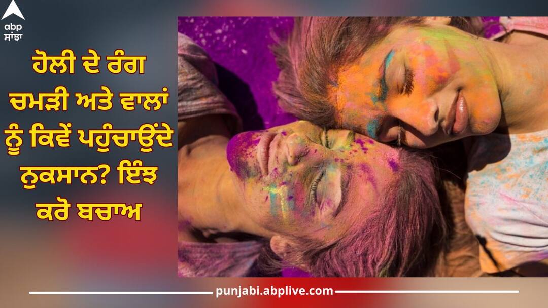 Harmful Side Effects Of Holi Colors: ਹੋਲੀ ਦਾ ਤਿਉਹਾਰ ਰੰਗਾਂ ਅਤੇ ਖੁਸ਼ੀਆਂ ਦਾ ਪ੍ਰਤੀਕ ਹੈ। ਇਸ ਤਿਉਹਾਰ ਦੀ ਲੋਕ ਬੇਸਬਰੀ ਦੇ ਨਾਲ ਇੰਤਜ਼ਾਰ ਕਰਦੇ ਹਨ। ਦਫਤਰਾਂ ਦੇ ਵਿੱਚ ਇਸ ਤਿਉਹਾਰ ਨੂੰ ਲੈ ਕੇ ਅਲੱਗ ਹੀ ਰੌਣਕਾਂ ਹੁੰਦੀਆਂ ਹਨ। ਇਸ ਦਿਨ ਲੋਕ ਇਕ-ਦੂਜੇ 'ਤੇ ਰੰਗ ਪਾ ਕੇ ਅਤੇ ਲਗਾ ਕੇ ਆਪਣੀ ਖੁਸ਼ੀ ਅਤੇ ਪਿਆਰ ਦਾ ਇਜ਼ਹਾਰ ਕਰਦੇ ਹਨ। ਪਰ, ਇਨ੍ਹਾਂ ਰੰਗਾਂ ਦੀ ਵਰਤੋਂ ਸਾਡੀ ਚਮੜੀ ਅਤੇ ਵਾਲਾਂ ਲਈ ਕੁੱਝ ਸਮੱਸਿਆਵਾਂ ਵੀ ਲਿਆਉਂਦੀ ਹੈ। ਬਜ਼ਾਰ ਵਿੱਚ ਉਪਲਬਧ ਨਕਲੀ ਰੰਗਾਂ ਵਿੱਚ ਬਹੁਤ ਸਾਰੇ ਹਾਨੀਕਾਰਕ ਰਸਾਇਣ ਹੁੰਦੇ ਹਨ, ਜੋ ਚਮੜੀ ਵਿੱਚ ਜਲਣ, ਖੁਸ਼ਕੀ, ਐਲਰਜੀ ਅਤੇ ਵਾਲਾਂ ਦੀ ਖੁਸ਼ਕੀ ਅਤੇ ਟੁੱਟਣ ਵਰਗੀਆਂ ਸਮੱਸਿਆਵਾਂ ਦਾ ਕਾਰਨ ਬਣਦੇ ਹਨ। ਅੱਜ ਅਸੀਂ ਮਾਹਿਰਾਂ ਦੇ ਵਿਚਾਰਾਂ ਤੋਂ ਜਾਣਾਂਗੇ ਕਿ ਇਹ ਰੰਗ ਸਾਡੇ 'ਤੇ ਕੀ ਪ੍ਰਭਾਵ ਪਾਉਂਦੇ ਹਨ ਅਤੇ ਅਸੀਂ ਇਨ੍ਹਾਂ ਨੁਕਸਾਨਾਂ ਤੋਂ ਕਿਵੇਂ ਬਚ ਸਕਦੇ ਹਾਂ, ਤਾਂ ਜੋ ਅਸੀਂ ਬਿਨਾਂ ਕਿਸੇ ਸਮੱਸਿਆ ਦੇ ਹੋਲੀ ਦਾ ਆਨੰਦ ਮਾਣ ਸਕੀਏ।