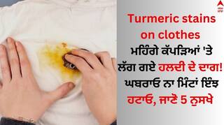 How to clean turmeric stains on clothes: ਪਰਟੀਆਂ ਵਿੱਚ ਖਾਣਾ ਖਾਂਦੇ ਵਾਲੇ ਮਹਿੰਗੇ ਕੱਪੜਿਆਂ 'ਤੇ ਹਲਦੀ ਦੇ ਦਾਗ ਲੱਗ ਜਾਂਦੇ ਹਨ। ਕਈ ਵਾਰ ਬੱਚੇ ਘਰ ਅੰਦਰ ਵੀ ਕੱਪੜਿਆਂ ਉੱਪਰ ਹਲਦੀ ਦੇ ਨਿਸ਼ਾਨ ਲਾ ਬਹਿੰਦੇ ਹਨ। ਇਨ੍ਹਾਂ ਜ਼ਿੱਦੀ ਦਾਗਾਂ ਤੋਂ ਛੁਟਕਾਰਾ ਪਾਉਣਾ ਕਾਫੀ ਔਖਾ ਹੁੰਦਾ ਹੈ। ਖਾਸ ਕਰਕੇ ਹਲਕੇ ਰੰਗ ਦੇ ਕੱਪੜਿਆਂ ਤੋਂ ਧੱਬੇ ਹਟਾਉਣਾ ਬਹੁਤ ਮੁਸ਼ਕਲ ਹੋ ਜਾਂਦਾ ਹੈ।