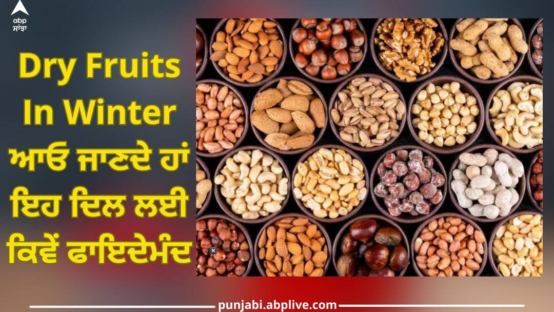 Dry Fruits In Winter: ਸਰਦੀਆਂ ਦੇ ਮੌਸਮ ਵਿੱਚ ਦਿਲ ਦੇ ਦੌਰੇ ਅਤੇ ਸਟ੍ਰੋਕ ਵਰਗੀਆਂ ਦਿਲ ਦੀਆਂ ਬਿਮਾਰੀਆਂ ਦਾ ਖ਼ਤਰਾ ਵੱਧ ਜਾਂਦਾ ਹੈ। ਅਜਿਹੀ ਸਥਿਤੀ ਵਿੱਚ, ਅਖਰੋਟ, ਬਦਾਮ, ਕਾਜੂ ਅਤੇ ਪਿਸਤਾ ਵਰਗੇ ਕੁੱਝ ਸੁੱਕੇ ਮੇਵੇ ਨੂੰ ਆਪਣੀ ਖੁਰਾਕ ਵਿੱਚ ਸ਼ਾਮਲ ਕਰਨਾ ਫਾਇਦੇਮੰਦ ਹੋ ਸਕਦਾ ਹੈ। ਇਨ੍ਹਾਂ ਦੇ ਸੇਵਨ ਨਾਲ ਸਰੀਰ ਨੂੰ ਠੰਡ ਦੇ ਵਿੱਚ ਗਰਮੀ ਵੀ ਪ੍ਰਾਪਤ ਹੁੰਦੀ ਹੈ। ਇਨ੍ਹਾਂ ਸਾਰਿਆਂ 'ਚ ਐਂਟੀਆਕਸੀਡੈਂਟ, ਓਮੇਗਾ-3 ਫੈਟੀ ਐਸਿਡ ਅਤੇ ਹੋਰ ਪੋਸ਼ਕ ਤੱਤ ਪਾਏ ਜਾਂਦੇ ਹਨ ਜੋ ਦਿਲ ਦੀ ਸਿਹਤ ਨੂੰ ਬਿਹਤਰ ਬਣਾਉਂਦੇ ਹਨ ਅਤੇ ਬਿਮਾਰੀਆਂ ਤੋਂ ਬਚਾਉਂਦੇ ਹਨ ਪਰ ਇਨ੍ਹਾਂ ਨੂੰ ਜ਼ਿਆਦਾ ਖਾਣਾ ਨੁਕਸਾਨਦੇਹ ਹੋ ਸਕਦਾ ਹੈ। ਮਾਹਿਰਾਂ ਅਨੁਸਾਰ ਅਖਰੋਟ, ਬਦਾਮ, ਕਾਜੂ ਅਤੇ ਪਿਸਤਾ ਦਾ ਰੋਜ਼ਾਨਾ 30 ਗ੍ਰਾਮ ਤੋਂ ਵੱਧ ਸੇਵਨ ਨਹੀਂ ਕਰਨਾ ਚਾਹੀਦਾ। ਆਓ ਜਾਣਦੇ ਹਾਂ ਇਹ ਦਿਲ ਲਈ ਕਿਵੇਂ ਫਾਇਦੇਮੰਦ ਹੈ।