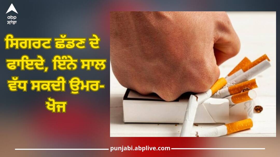 ਖੋਜ ਵਿੱਚ ਕਿਹਾ ਗਿਆ ਹੈ ਕਿ ਜੇਕਰ ਕਿਸੇ ਵੀ ਉਮਰ ਦਾ ਵਿਅਕਤੀ ਤਿੰਨ ਸਾਲ ਤੋਂ ਘੱਟ ਸਮੇਂ ਤੱਕ ਵੀ ਸਿਗਰਟਨੋਸ਼ੀ ਛੱਡ ਦਿੰਦਾ ਹੈ ਤਾਂ ਉਹ 5 ਸਾਲ ਦੀ ਜ਼ਿੰਦਗੀ ਗੁਆਉਣ ਤੋਂ ਬਚ ਸਕਦਾ ਹੈ।