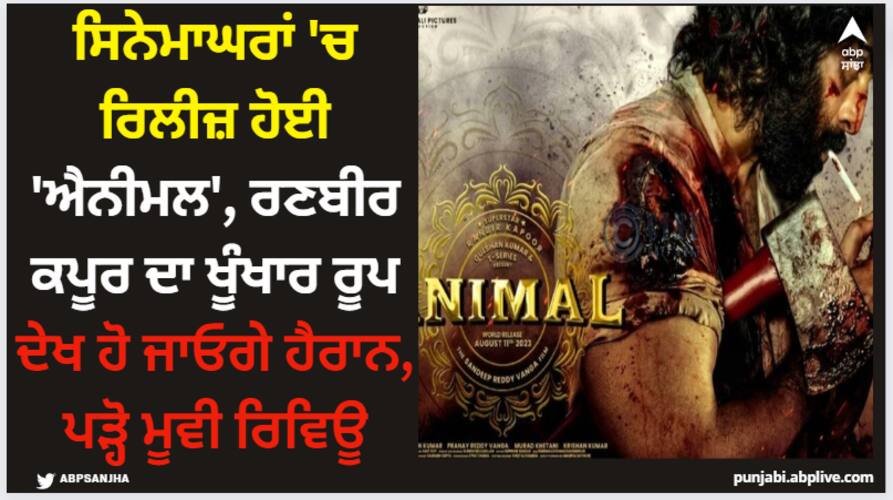 Animal Review In Punjabi: ਜਦੋਂ ਤੋਂ ਐਨਮਿਲ ਦਾ ਟ੍ਰੇਲਰ ਸਾਹਮਣੇ ਆਇਆ ਹੈ, ਪੂਰਾ ਮਾਹੌਲ ਬਣ ਗਿਆ ਹੈ ਅਤੇ ਇਹ ਫਿਲਮ ਇੱਕ ਤਬਾਹੀ ਹੈ। ਨਿਰਦੇਸ਼ਕ ਨੇ ਪਹਿਲਾਂ ਹੀ ਕਿਹਾ ਸੀ ਕਿ ਇਹ ਹੁਣ ਤੱਕ ਦੀ ਸਭ ਤੋਂ ਹਿੰਸਕ ਫਿਲਮ ਹੋਣ ਵਾਲੀ ਹੈ, ਯਾਨੀ ਕਿ ਇੱਕ ਹਿੰਸਕ ਫਿਲਮ ਹੈ ਜਿਸ ਵਿੱਚ ਬਹੁਤ ਖੂਨ-ਖਰਾਬਾ ਹੋਵੇਗਾ। ਬੌਬੀ ਦਿਓਲ ਦਾ ਆਖਰੀ ਸੀਨ ਟ੍ਰੇਲਰ ਵਿੱਚ ਹਲਚਲ ਮਚਾ ਦਿੰਦਾ ਹੈ ਪਰ ਇਸ ਵਿੱਚ ਜਨਤਾ ਨੂੰ ਬੇਵਕੂਫ ਬਣਾਇਆ ਗਿਆ ਸੀ। ਬੌਬੀ ਦਿਓਲ ਦਾ ਨਾਮ। ਫਿਲਮ ਦੇਖਣ ਤੋਂ ਪਹਿਲਾਂ ਮੂਵੀ ਰਿਵਿਊ ਨੂੰ ਧਿਆਨ ਨਾਲ ਪੜ੍ਹੋ।