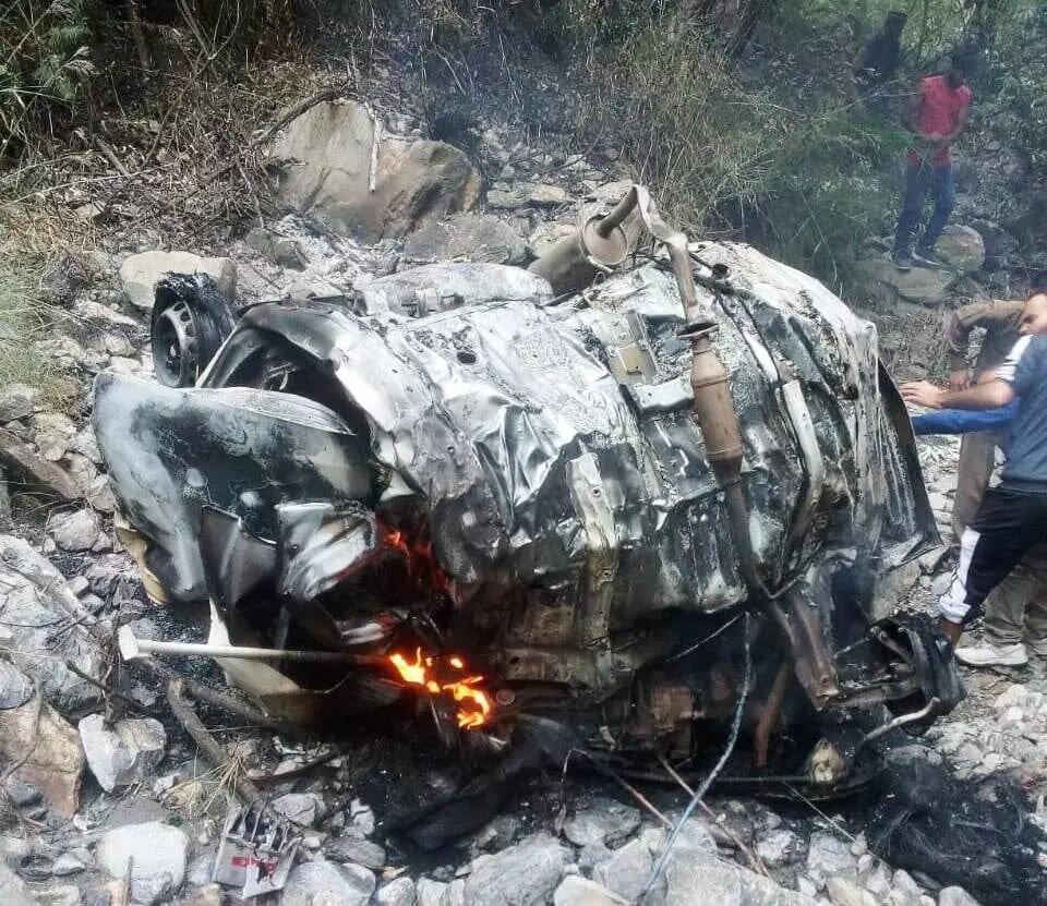 ਚੰਬਾ: ਚੰਬਾ ਜ਼ਿਲ੍ਹੇ ਦੇ ਕੱਲਹੇਲ ਨੇੜੇ ਭਿਆਨਕ ਹਾਸਦੇ ਦੀ ਖ਼ਬਰ ਸਾਹਮਣੇ ਆਈ ਹੈ। ਇੱਥੇ ਆਲਟੋ ਕਾਰ ਨਾਲ ਹੋਏ ਹਾਦਸੇ 'ਚ 4 ਲੋਕਾਂ ਦੀ ਮੌਤ ਹੋ ਗਈ। ਮਰਨ ਵਾਲਿਆਂ 'ਚ ਇੱਕ ਅਧਿਆਪਕ, ਲੈਬ ਅਟੈਂਡੈਂਟ, ਇੱਕ ਔਰਤ ਤੇ ਉਸ ਦਾ ਬੇਟਾ ਸ਼ਾਮਲ ਹਨ। ਪੰਜਾਬ ਭਵਨ 'ਚ ਰੋਕੀ ਮਜੀਠੀਆ ਦੀ ਐਂਟਰੀ, ਬਾਹਰ ਬੈਠ ਹੀ ਲਾਏ ਮੁਰਦਾਬਾਦ ਦੇ ਨਾਅਰੇ ਜਾਣਕਾਰੀ ਅਨੁਸਾਰ ਕੱਲਹੇਲ ਨੇੜੇ ਇਹ ਆਲਟੋ ਕਾਰ ਬੇਕਾਬੂ ਹੋ ਕੇ ਡੂੰਘੀ ਖੱਡ ਵਿੱਚ ਜਾ ਡਿੱਗੀ। ਹਾਦਸਾ ਇੰਨਾ ਭਿਆਨਕ ਸੀ ਕਿ ਕਾਰ ਅਚਾਨਕ ਡਿੱਗਣ ਤੋਂ ਬਾਅਦ, ਅੱਗ ਲੱਗ ਗਈ ਤੇ ਉਸ ਦੇ ਪਰਖਚੇ ਉੱਡ ਗਏ। ਅੱਗਾ ਦੌੜ, ਪਿੱਛਾ ਚੌੜ! ਕੈਪਟਨ ਸਰਕਾਰ ਕੋਲੋਂ ਅਜੇ ਤੱਕ ਨਹੀਂ ਤਿਆਰ ਹੋਇਆ ਬਿੱਲ ਪੰਜਾਬੀ 'ਚ ਤਾਜ਼ਾ ਖਬਰਾਂ ਪੜ੍ਹਨ ਲਈ ਕਰੋ ਐਪ ਡਾਊਨਲੋਡ