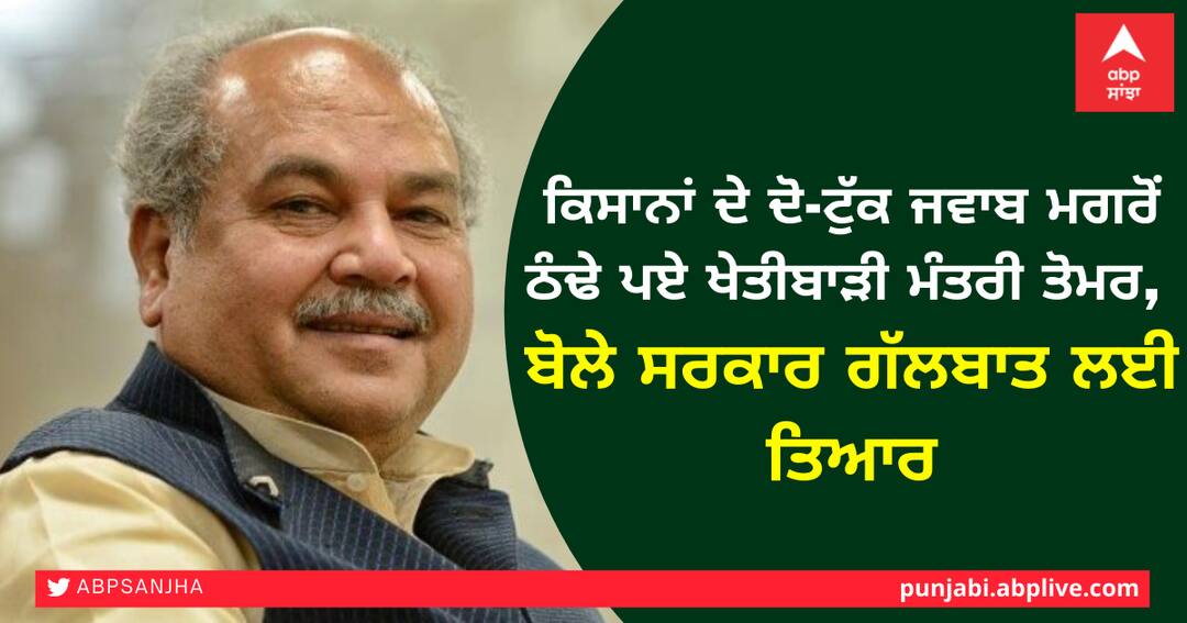 ਨਵੀਂ ਦਿੱਲੀ: ਖੇਤੀਬਾੜੀ ਮੰਤਰੀ ਨਰਿੰਦਰ ਤੋਮਰ ਨੇ ਕੁਝ ਦਿਨ ਪਹਿਲਾਂ ਕਿਹਾ ਸੀ ਕਿ ਖੇਤੀ ਕਾਨੂੰਨਾਂ ਨੂੰ ਛੱਡ ਕਿਸਾਨ ਕੋਈ ਵੀ ਗੱਲ ਸਰਕਾਰ ਨਾਲ ਕਰ ਸਕਦੇ ਹਨ। ਇਸ ਉੱਪਰ ਕਿਸਾਨਾਂ ਨੇ ਦੋ-ਟੁੱਕ ਜਵਾਬ ਦਿੰਦਿਆਂ ਕਿਹਾ ਸੀ ਕਿ ਹੁਣ ਗੱਲਬਾਤ ਹਾਲਚਾਲ ਪੁੱਛਣ ਲਈ ਨਹੀਂ ਸਗੋਂ ਕਾਨੂੰਨ ਰੱਖ ਕਰਾਉਣ ਬਾਰੇ ਹੀ ਹੋਏਗੀ। ਇਸ ਮਗਰੋਂ ਖੇਤੀ ਮੰਤਰੀ ਥੋੜ੍ਹੇ ਠੰਢੇ ਪਏ ਨਜ਼ਰ ਆ ਰਹੇ ਹਨ। ਹੁਣ ਤੋਮਰ ਨੇ ਕਿਹਾ ਹੈ ਕਿ ਉਹ ਕਿਸਾਨਾਂ ਨਾਲ ਗੱਲਬਾਤ ਕਰਨ ਲਈ ਤਿਆਰ ਹਨ ਬਸ਼ਰਤੇ ਉਹ ਖੇਤੀਬਾੜੀ ਸੁਧਾਰ ਕਾਨੂੰਨਾਂ ਬਾਰੇ ਆਪਣੇ ਕੋਈ ਖ਼ਾਸ ਤਰਕਪੂਰਨ ਇਤਰਾਜ਼ ਪ੍ਰਗਟਾਉਣ। ਤੋਮਰ ਨੇ ਕਿਹਾ ਕਿ ਸਰਕਾਰ ਅੰਦੋਲਨ ਕਰ ਰਹੇ ਕਿਸਾਨਾਂ ਦਾ ਸਨਮਾਨ ਕਰਦੀ ਹੈ ਜਿਸ ਕਰਕੇ ਉਨ੍ਹਾਂ ਨਾਲ 11 ਗੇੜ ਦੀ ਗੱਲਬਾਤ ਕੀਤੀ ਗਈ। ਉਧਰ ਕਾਂਗਰਸ ਨੇ ਇਸ ਟਿੱਪਣੀ 'ਤੇ ਵੀ ਖੇਤੀਬਾੜੀ ਮੰਤਰੀ ਨੂੰ ਘੇਰਿਆ ਹੈ। ਕਾਂਗਰਸ ਨੇ ਇਸ ਨੂੰ “ਸੰਵੇਦਨਹੀਣ” ਕਰਾਰ ਦਿੰਦਿਆਂ ਖੇਤੀਬਾੜੀ ਮੰਤਰੀ ਨਰਿੰਦਰ ਤੋਮਰ ਨੂੰ ਹਟਾਉਣ ਦੀ ਮੰਗ ਕੀਤੀ। ਖੇਤੀ ਮੰਤਰੀ ਨਰਿੰਦਰ ਸਿੰਘ ਤੋਮਰ ਨੇ ਕਿਹਾ “ਪ੍ਰਧਾਨ ਮੰਤਰੀ ਨਰਿੰਦਰ ਮੋਦੀ ਦੀ ਅਗਵਾਈ ਹੇਠਲੀ ਭਾਰਤ ਸਰਕਾਰ ਕਿਸਾਨਾਂ ਦਾ ਬਹੁਤ ਸਤਿਕਾਰ ਕਰਦੀ ਹੈ ਤੇ ਇਸੇ ਲਈ ਜਦੋਂ ਵੀ ਕਿਸਾਨ ਗੱਲਬਾਤ ਕਰਨੀ ਚਾਹੁਣਗੇ, ਤਾਂ ਸਰਕਾਰ ਗੱਲਬਾਤ ਕਰਨ ਲਈ ਤਿਆਰ ਹੋਵੇਗੀ ਪਰ, ਅਸੀਂ ਵਾਰ ਵਾਰ ਕਿਸਾਨ ਯੂਨੀਅਨਾਂ ਨੂੰ ਅਪੀਲ ਕੀਤੀ ਹੈ ਕਿ ਉਹ ਤਰਕ ਨਾਲ ਕਾਨੂੰਨ ਦੇ ਸਬੰਧਤ ਧਾਰਾਵਾਂ 'ਤੇ ਇਤਰਾਜ਼ ਉਠਾਉਣ ਤੇ ਅਸੀਂ ਉਨ੍ਹਾਂ ਦੀ ਗੱਲ ਸੁਣਾਂਗੇ ਤੇ ਉਨ੍ਹਾਂ ਦੀਆਂ ਚਿੰਤਾਵਾਂ ਦਾ ਹੱਲ ਕੱਢਣ ਦੀ ਕੋਸ਼ਿਸ਼ ਕਰਾਂਗੇ। " ਉਨ੍ਹਾਂ ਕਿਹਾ ਕਿ ਸਰਕਾਰ ਨੇ 11 ਵਾਰ ਕਿਸਾਨਾਂ ਨਾਲ ਗੱਲਬਾਤ ਕੀਤੀ ਸੀ ਤੇ ਉਨ੍ਹਾਂ ਨੂੰ ਪੁੱਛਿਆ ਸੀ ਕਿ ਕਾਨੂੰਨਾਂ ਪ੍ਰਤੀ ਉਨ੍ਹਾਂ ਦਾ ਇਤਰਾਜ਼ ਕੀ ਹੈ ਤੇ ਕਾਨੂੰਨਾਂ ਦਾ ਉਹ ਕਿਹੜਾ ਪ੍ਰਬੰਧ ਬੇਇਨਸਾਫੀ ਮੰਨਦੇ ਹਨ। ਮੰਤਰੀ ਨੇ ਕਿਹਾ “ਪਰ, ਨਾ ਤਾਂ ਕਿਸੇ ਰਾਜਨੀਤਕ ਪਾਰਟੀ ਨੇ ਸਦਨ ਵਿੱਚ ਇਸ ਮਾਮਲੇ’ ਤੇ ਕੋਈ ਪ੍ਰਤੀਕਿਰਿਆ ਦਿੱਤੀ ਤੇ ਨਾ ਹੀ ਕਿਸੇ ਕਿਸਾਨ ਯੂਨੀਅਨ ਦੇ ਨੇਤਾ ਨੇ ਕੁਝ ਦੱਸਿਆ। ਇਸ ਲਈ ਗੱਲਬਾਤ ਅੱਗੇ ਨਹੀਂ ਵਧੀ। ” ਇਸ ਤੋਂ ਪਹਿਲਾਂ ਕਾਂਗਰਸ ਨੇਤਾ ਰਾਹੁਲ ਗਾਂਧੀ ਨੇ ਕਿਸਾਨਾਂ ਦੇ ਨਿਧੜਕ ਅੰਦੋਲਨ ਦੀ ਸ਼ਲਾਘਾ ਕਰਦਿਆਂ ਕਿਹਾ ਕਿ 500 ਕਿਸਾਨਾਂ ਦੀ ਮੌਤ ਇਨਸਾਫ ਦੀ ਮੰਗ ਕਰਦਿਆਂ ਹੋਈ ਹੈ। ਗਾਂਧੀ ਨੇ ਖੇਤੀ ਕਾਨੂੰਨਾਂ ਨੂੰ ਰੱਦ ਕਰਨ ਦੀ ਮੰਗ ਕਰਦਿਆਂ ਕਿਹਾ ਕਿ ਇਹ ਵਿਵਾਦ ਹੱਲ ਕਰਨ ਦਾ ਇਹੋ ਇਕੋ ਰਸਤਾ ਹੈ। ਬਾਅਦ ਵਿੱਚ, ਕਾਂਗਰਸ ਦੇ ਤਰਜਮਾਨ ਸੁਪ੍ਰੀਆ ਸ਼੍ਰੀਨੇਤ ਨੇ ਤੋਮਰ ਦੀਆਂ ਪਿਛਲੀਆਂ ਟਿੱਪਣੀਆਂ ਦਾ ਜ਼ਿਕਰ ਕਰਦਿਆਂ ਕਿਹਾ ਕਿ ਸਰਕਾਰ ਕਾਨੂੰਨਾਂ ਨੂੰ ਰੱਦ ਕਰਨ ਤੋਂ ਸਿਵਾਏ ਕਿਸੇ ਵੀ ਹੋਰ ਗੱਲ ਬਾਰੇ ਕਿਸਾਨਾਂ ਨਾਲ ਗੱਲਬਾਤ ਕਰਨ ਲਈ ਤਿਆਰ ਹੈ ਤੇ ਕਿਹਾ,“ਉਨ੍ਹਾਂ ਦੀ ਸੰਵੇਦਨਸ਼ੀਲ ਟਿੱਪਣੀ ਲਈ ਖੇਤੀਬਾੜੀ ਮੰਤਰੀ ਨੂੰ ਹਟਾ ਦੇਣਾ ਚਾਹੀਦਾ ਹੈ।” ਤੋਮਰ ਨੇ ਕਿਸਾਨਾਂ 'ਤੇ ਸਰਕਾਰੀ ਰਿਕਾਰਡ ਦਾ ਬਚਾਅ ਕਰਦਿਆਂ ਕਿਹਾ ਕਿ ਦੇਸ਼ ਨੇ ਪ੍ਰਧਾਨ ਮੰਤਰੀ ਦੀ ਕਿਸਾਨਾਂ ਪ੍ਰਤੀ ਵਚਨਬੱਧਤਾ ਵੇਖੀ ਹੈ। “ਮੋਦੀ ਸਰਕਾਰ ਨੇ ਪਿਛਲੇ ਸੱਤ ਸਾਲਾਂ ਵਿੱਚ ਕਿਸਾਨਾਂ ਦੀ ਆਮਦਨ ਵਧਾਉਣ ਅਤੇ ਖੇਤੀ ਮੁਨਾਫਾ ਵਧਾਉਣ ਲਈ ਲਏ ਗਏ ਫੈਸਲੇ ਇਤਿਹਾਸਕ ਤੇ ਬੇਮਿਸਾਲ ਹਨ। ਕੋਈ ਵੀ ਉਨ੍ਹਾਂ ਨੂੰ ਰੱਦ ਕਰਨ ਦੀ ਸਥਿਤੀ ਵਿਚ ਨਹੀਂ ਹੈ। ਜਿੱਥੋਂ ਤਕ ਰਾਹੁਲ ਗਾਂਧੀ ਦੇ ਟਵੀਟਸ ਦਾ ਮਾਲਾ ਹੈ, ਇਥੋਂ ਤਕ ਕਿ ਕਾਂਗਰਸ ਵੀ ਉਨ੍ਹਾਂ ਨੂੰ ਗੰਭੀਰਤਾ ਨਾਲ ਨਹੀਂ ਲੈਂਦੀ। ਮੈਨੂੰ 