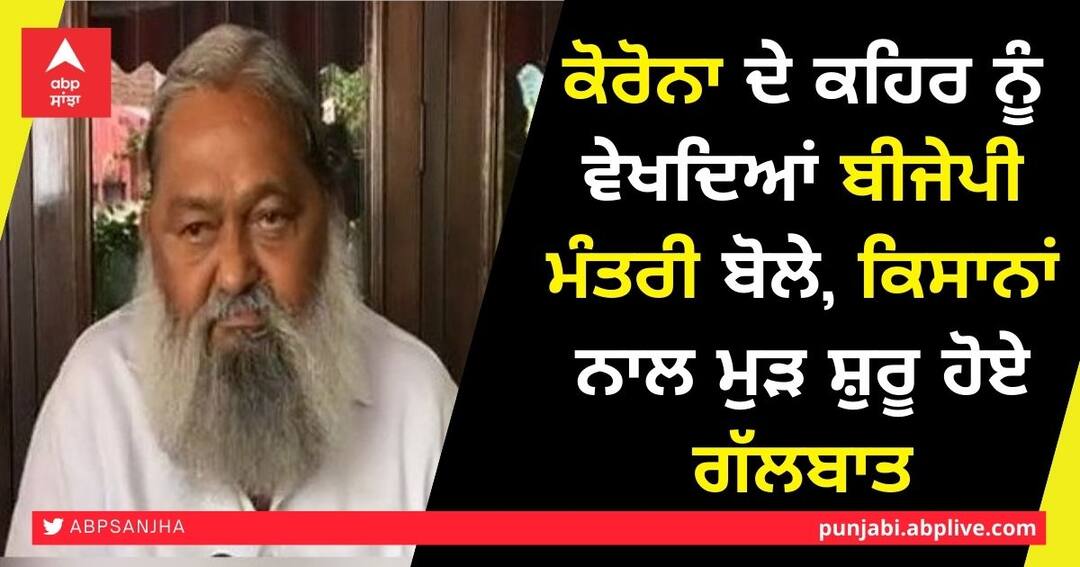 ਵਿਜ ਨੇ ਸ਼ੁੱਕਰਵਾਰ ਨੂੰ ਕਿਹਾ ਕਿ ਇੱਕ ਵਾਰ ਫਿਰ ਕੋਰੋਨਾ ਬਹੁਤ ਤੇਜ਼ੀ ਨਾਲ ਫੈਲ ਰਿਹਾ ਹੈ, ਅਜਿਹੀ ਸਥਿਤੀ ਵਿੱਚ ਹਰਿਆਣਾ ਦੀਆਂ ਹੱਦਾਂ 'ਤੇ ਕਿਸਾਨਾਂ ਦਾ ਇੰਨਾ ਵੱਡਾ ਇਕੱਠ ਹੋ ਰਿਹਾ ਹੈ। ਅੱਜ ਜਨਤਾ ਦੇ ਨਾਲ-ਨਾਲ ਕਿਸਾਨਾਂ ਨੂੰ ਵੀ ਕੋਰੋਨਾ ਤੋਂ ਬਚਾਉਣਾ ਹੈ। ਉਨ੍ਹਾਂ ਕਿਹਾ ਕਿ ਇਸ ਸਥਿਤੀ ਨਾਲ ਨਜਿੱਠਣ ਲਈ ਮੈਂ ਕੇਂਦਰੀ ਖੇਤੀਬਾੜੀ ਮੰਤਰੀ ਨਰਿੰਦਰ ਸਿੰਘ ਤੋਮਰ ਨੂੰ ਪੱਤਰ ਲਿਖਣ ਜਾ ਰਿਹਾ ਹਾਂ ਤਾਂ ਜੋ ਕਿਸਾਨਾਂ ਨਾਲ ਗੱਲਬਾਤ ਫਿਰ ਤੋਂ ਸ਼ੁਰੂ ਕੀਤੀ ਜਾ ਸਕੇ।