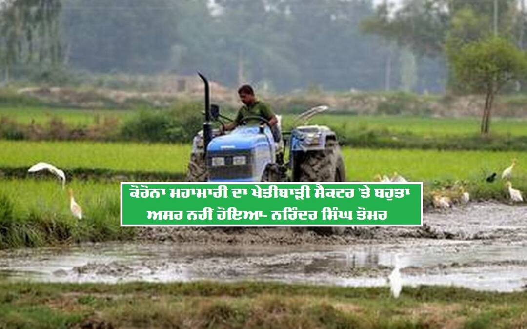ਨਵੀਂ ਦਿੱਲੀ: ਖੇਤੀਬਾੜੀ ਮੰਤਰੀ ਨਰਿੰਦਰ ਸਿੰਘ ਤੋਮਰ ਨੇ ਸ਼ੁੱਕਰਵਾਰ ਨੂੰ ਕਿਹਾ ਕਿ ਕੋਰੋਨਾ ਮਹਾਮਾਰੀ ਦਾ ਖੇਤੀਬਾੜੀ ਸੈਕਟਰ 'ਤੇ ਬਹੁਤਾ ਅਸਰ ਨਹੀਂ ਹੋਇਆ। ਉਨ੍ਹਾਂ ਕਿਹਾ ਕਿ 2020-21 ਦੇ ਸਾਉਣੀ ਦੇ ਸੀਜ਼ਨ ਵਿੱਚ 1,445.2 ਲੱਖ ਟਨ ਅਨਾਜ ਪੈਦਾ ਹੋਣ ਦੀ ਉਮੀਦ ਹੈ। ਸਰਕਾਰੀ ਅੰਕੜਿਆਂ ਅਨੁਸਾਰ ਸਾਲ 2019-20 ਦੇ ਸਾਉਣੀ ਦੇ ਸੀਜ਼ਨ ਦੌਰਾਨ ਅਨਾਜ ਦਾ ਉਤਪਾਦਨ 1,433.8 ਲੱਖ ਟਨ ਸੀ। ਉਤਪਾਦਨ ਪਿਛਲੇ ਸਾਲ ਨਾਲੋਂ ਵਧੀਆ ਰਹੇਗਾ: ਇਸ ਸਮੇਂ ਦੇਸ਼ ਵਿਚ ਸਾਉਣੀ ਦੀਆਂ ਫਸਲਾਂ ਦੀ ਕਟਾਈ ਜਾਰੀ ਹੈ। ਚੌਲ ਸਾਉਣੀ ਦੀ ਮੁੱਖ ਫਸਲ ਹੈ। ਤੋਮਰ ਨੇ ਉਦਯੋਗ ਸੰਗਠਨ ਸੀਆਈਆਈ ਵੱਲੋਂ ਕਰਵਾਈ ਡਿਜੀਟਲ ਕਾਨਫਰੰਸ ਨੂੰ ਸੰਬੋਧਨ ਕਰਦਿਆਂ ਕਿਹਾ, "ਪਿਛਲੇ ਸਾਲ ਨਾਲੋਂ ਖੁਰਾਕ ਉਤਪਾਦਨ ਵਧੀਆ ਰਹੇਗਾ। ਸ਼ੁਰੂਆਤੀ ਅਨੁਮਾਨਾਂ ਅਨੁਸਾਰ, 2020-21 ਸਾਉਣੀ ਦੇ ਸੀਜ਼ਨ ਦੌਰਾਨ ਅਨਾਜ ਦਾ ਉਤਪਾਦਨ 1,445.2 ਲੱਖ ਟਨ ਹੋਣ ਦਾ ਅਨੁਮਾਨ ਹੈ।" ਸਾਉਣੀ ਦੀਆਂ ਫਸਲਾਂ ਦੇ ਬਿਜਾਈ ਵਾਲੇ ਖੇਤਰ ਵਿੱਚ ਰਿਕਾਰਡ ਵਾਧਾ: ਉਨ੍ਹਾਂ ਕਿਹਾ ਕਿ ਗੰਨੇ ਤੇ ਕਪਾਹ ਜਿਹੀਆਂ ਨਕਦ ਫਸਲਾਂ ਦਾ ਉਤਪਾਦਨ ਵੀ ਵਧੀਆ ਰਹਿਣ ਦੀ ਉਮੀਦ ਹੈ। ਉਨ੍ਹਾਂ ਕਿਹਾ ਕਿ ਇਸ ਸਾਲ ਕੋਵਿਡ-19 ਮਹਾਂਮਾਰੀ ਦੇ ਬਾਵਜੂਦ ਸਾਉਣੀ ਦੀਆਂ ਫਸਲਾਂ ਦੇ ਬਿਜਾਈ ਖੇਤਰ ਵਿੱਚ ਰਿਕਾਰਡ 4.51 ਫੀਸਦੀ ਦਾ ਵਾਧਾ ਹੋਇਆ ਹੈ ਤੇ ਇਹ ਵਧ ਕੇ 1,121.75 ਲੱਖ ਹੈਕਟੇਅਰ ਹੋ ਗਿਆ ਹੈ। ਖੇਤੀਬਾੜੀ ਭਾਰਤੀ ਆਰਥਿਕਤਾ ਦਾ ਅਧਾਰ ਹੈ: ਤੋਮਰ ਨੇ ਕਿਹਾ ਕਿ ਖੇਤੀਬਾੜੀ ਭਾਰਤੀ ਆਰਥਿਕਤਾ ਦਾ ਅਧਾਰ ਹੈ। ਵਿੱਤੀ ਸਾਲ 2020-21 ਦੀ ਪਹਿਲੀ ਤਿਮਾਹੀ ਦੌਰਾਨ ਇਸ ਖੇਤਰ ਵਿੱਚ ਵੀ 3.4 ਫੀਸਦ ਦਾ ਵਾਧਾ ਹੋਇਆ ਹੈ। ਨਵੇਂ ਖੇਤੀਬਾੜੀ ਕਾਨੂੰਨਾਂ ਬਾਰੇ ਮੰਤਰੀ ਨੇ ਕਿਹਾ ਕਿ ਕਿਸਾਨਾਂ ਨੂੰ ਸੁਧਾਰਾਂ ਬਾਰੇ ਗੁੰਮਰਾਹ ਕੀਤਾ ਜਾ ਰਿਹਾ ਹੈ। ਉਨ੍ਹਾਂ ਦੁਹਰਾਇਆ ਕਿ ਮੰਡੀਆਂ ਐਮਐਸਪੀ ਖਰੀਦ ਦੇ ਨਾਲ-ਨਾਲ ਦੇਸ਼ ਭਰ ਵਿੱਚ ਕੰਮ ਕਰਨਾ ਜਾਰੀ ਰੱਖਣਗੀਆਂ। ਪੰਜਾਬੀ ‘ਚ ਤਾਜ਼ਾ ਖਬਰਾਂ ਪੜ੍ਹਨ ਲਈ ਕਰੋ ਐਪ ਡਾਊਨਲੋਡ: https://play.google.com/store/apps/details?id=com.winit.starnews.hin https://apps.apple.com/in/app/abp-live-news/id811114904