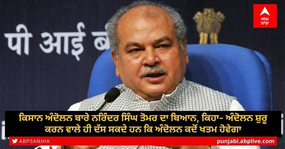 ਨਵੀਂ ਦਿੱਲੀ: ਦਿੱਲੀ-ਹਰਿਆਣਾ ਸਰਹੱਦ 'ਤੇ ਖੇਤੀਬਾੜੀ ਕਾਨੂੰਨਾਂ ਵਿਰੁੱਧ ਕਿਸਾਨਾਂ ਦਾ ਵਿਰੋਧ ਜਾਰੀ ਹੈ। ਕਿਸਾਨਾਂ ਦੇ ਅੰਦੋਲਨ ਨੂੰ ਉਨ੍ਹਾਂ ਦੀ ਮੰਗ 'ਤੇ ਅੜੇ ਰਹਿਣ ਵਿੱਚ ਇੱਕ ਸਾਲ ਤੋਂ ਵੱਧ ਸਮਾਂ ਲੱਗਿਆ। ਇਸ ਦੌਰਾਨ ਸਰਕਾਰ ਅਤੇ ਕਿਸਾਨਾਂ ਦਰਮਿਆਨ ਕਈ ਦੌਰ ਦੀਆਂ ਮੀਟਿੰਗਾਂ ਵੀ ਅਸਫਲ ਰਹੀਆਂ। ਇਸ ਦੌਰਾਨ ਭਾਜਪਾ ਨੇਤਾ ਨਰਿੰਦਰ ਸਿੰਘ ਤੋਮਰ ਨੇ ਕਿਹਾ ਹੈ ਕਿ ਅੰਦੋਲਨ ਸ਼ੁਰੂ ਕਰਨ ਵਾਲਾ ਦੱਸ ਸਕਦਾ ਹੈ ਕਿ ਅੰਦੋਲਨ ਕਦੋਂ ਖਤਮ ਹੋਵੇਗਾ।