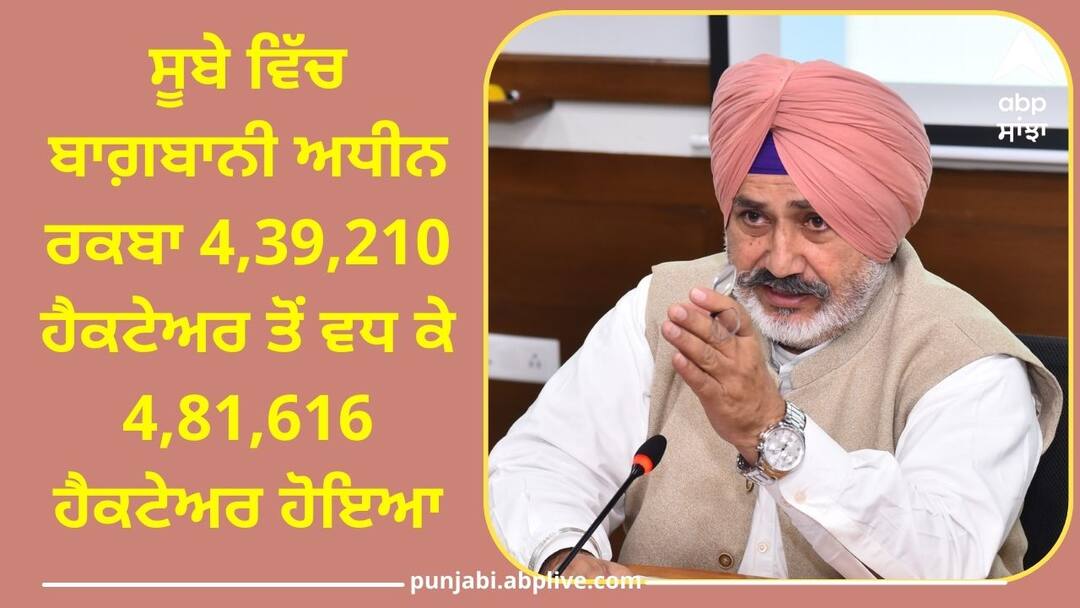 Punjab News: ਪੰਜਾਬ ਦੇ ਬਾਗ਼ਬਾਨੀ ਮੰਤਰੀ ਚੇਤਨ ਸਿੰਘ ਜੌੜਾਮਾਜਰਾ ਨੇ ਦੱਸਿਆ ਕਿ ਮੁੱਖ ਮੰਤਰੀ ਭਗਵੰਤ ਸਿੰਘ ਮਾਨ ਦੀ ਅਗਵਾਈ ਹੇਠ ਫ਼ਸਲੀ ਵਿਭਿੰਨਤਾ ਲਈ ਕੀਤੇ ਜਾ ਰਹੇ ਯਤਨਾਂ ਨੂੰ ਬੂਰ ਪੈਣ ਲੱਗਾ ਹੈ ਅਤੇ ਬਾਗ਼ਬਾਨੀ ਅਧੀਨ ਰਕਬੇ ਵਿੱਚ ਵੱਡਾ ਵਾਧਾ ਦਰਜ ਕੀਤਾ ਗਿਆ ਹੈ।