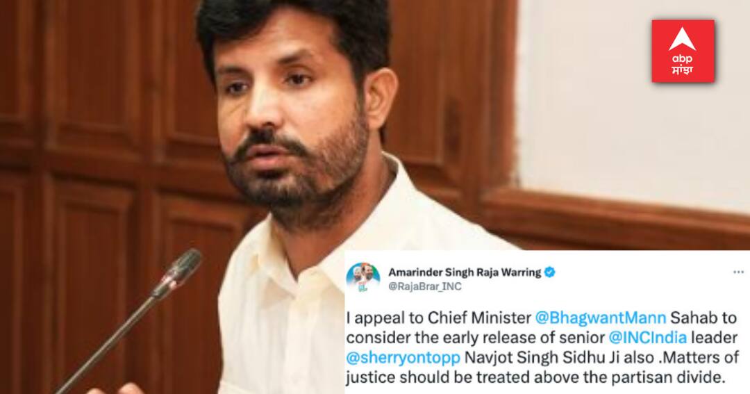 Punjab news: ਕਾਂਗਰਸ ਦੇ ਪ੍ਰਧਾਨ ਰਾਜਾ ਵੜਿੰਗ ਨੇ ਮੁੱਖ ਮੰਤਰੀ ਭਗਵੰਤ ਮਾਨ ਨੂੰ ਨਵਜੋਤ ਸਿੰਘ ਸਿੱਧੂ ਰਿਹਾਈ ਲਈ ਅਪੀਲ ਕੀਤੀ ਹੈ। ਉਨ੍ਹਾਂ ਕਿਹਾ ਕਿ ਪੱਖਪਾਤੀ ਪਾੜਾਂ ਤੋਂ ਉੱਪਰ ਉੱਠ ਕੇ ਨਿਆਂ ਕੀਤਾ ਜਾਵੇ।