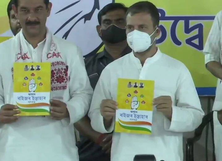ਗੁਹਾਟੀ: ਕਾਂਗਰਸ ਨੇਤਾ ਰਾਹੁਲ ਗਾਂਧੀ ਨੇ ਗੁਹਾਟੀ ਵਿੱਚ ਪਾਰਟੀ ਦਫਤਰ ਵਿੱਚ ਸ਼ਨੀਵਾਰ ਨੂੰ ਅਸਾਮ ਲਈ ਪਾਰਟੀ ਦਾ ਚੋਣ ਮੈਨੀਫੈਸਟੋ ਜਾਰੀ ਕੀਤਾ। ਉਨ੍ਹਾਂ ਕਿਹਾ ਕਿ ਸਾਡੇ ਮੈਨੀਫੈਸਟੋ 'ਚ ਪੰਜ ਗਾਰੰਟੀਜ਼ ਹਨ। ਇਹ ਮੈਨੀਫੈਸਟੋ ਅਸਾਮ ਦੇ ਲੋਕਾਂ ਨੇ ਬਣਾਇਆ ਹੈ। ਰਾਹੁਲ ਨੇ ਕਿਹਾ ਕਿ ਕਾਂਗਰਸ ਵਰਕਰਾਂ ਅਤੇ ਨੇਤਾਵਾਂ ਨੇ ਆਮ ਲੋਕਾਂ ਅਤੇ ਕਿਸਾਨਾਂ ਅਤੇ ਮਜ਼ਦੂਰਾਂ ਨਾਲ ਗੱਲਬਾਤ ਕੀਤੀ। ਇਹ ਮੈਨੀਫੈਸਟੋ ਪੰਜ ਗਰੰਟੀ ਲੈਂਦਾ ਹੈ।