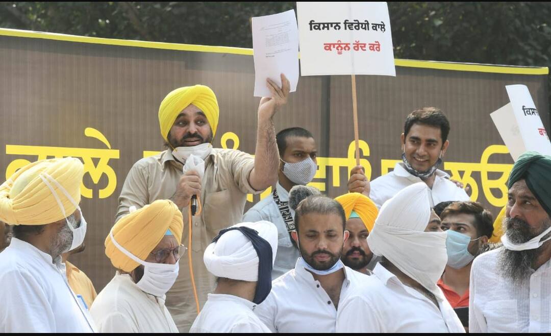 ਆਮ ਆਦਮੀ ਪਾਰਟੀ ਦੇ ਪੰਜਾਬ ਪ੍ਰਧਾਨ ਭਗਵੰਤ ਮਾਨ ਵਲੋਂ ਖੇਤੀ ਕਨੂੰਨ ਦੇ ਵਿਰੁੱਧ 'ਚ ਦਿੱਲੀ ਵਿਖੇ ਜੰਤਰ-ਮੰਤਰ 'ਤੇ ਧਰਨਾ ਦੇਣ ਦਾ ਐਲਾਨ ਕੀਤਾ ਗਿਆ ਸੀ। ਅੱਜ ਭਗਵੰਤ ਮਾਨ ਪੰਜਾਬ ਦੇ ਕਿਸਾਨਾਂ ਸਣੇ ਦਿੱਲੀ ਦੇ ਜੰਤਰ ਮੰਤਰ ਵਿਖੇ ਖੇਤੀ ਕਾਨੂੰਨ 2020 ਦਾ ਵਿਰੋਧ ਕਰ ਰਹੇ ਹਨ।