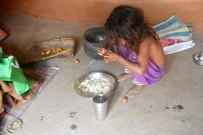 ਦੇਸ਼ 'ਚ ਭੁੱਖਮਰੀ ਨਾਲ ਆਏ ਦਿਨ ਕਿਸੇ ਨਾ ਕਿਸੇ ਗਰੀਬ ਪਰਿਵਾਰ ਦੇ ਬੱਚੇ ਦੀ ਮੌਤ ਦੀ ਖ਼ਬਰ ਸਾਹਮਣੇ ਆਉਂਦੀ ਰਹਿੰਦੀ ਹੈ। ਇਸ ਦਰਮਿਆਨ ਦੁਮਕਾ ਜ਼ਿਲ੍ਹੇ ਦੇ ਇੱਕ ਆਦਿਵਾਸੀ ਪਰਿਵਾਰ ਦੀ ਬੱਚੀ ਦੀ ਤਸਵੀਰ ਸਾਹਮਣੇ ਆਈ ਹੈ, ਜਿਸ 'ਚ ਉਹ ਗੋਭੀ ਦੇ ਸੁੱਕੇ ਪੱਤੇ ਉਬਾਲ ਕੇ ਚੌਲਾਂ ਨਾਲ ਖਾ ਰਹੀ ਹੈ।
