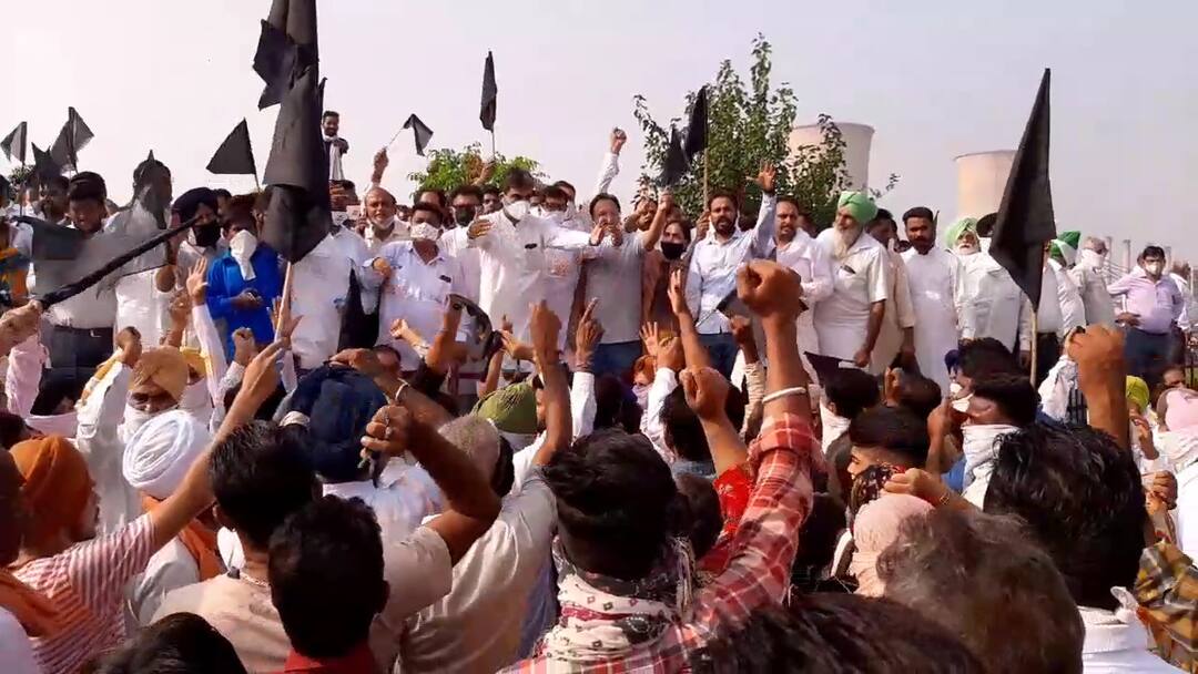 ਬਠਿੰਡਾ ਵਿੱਚ ਅੱਜ ਕਾਂਗਰਸ ਪਾਰਟੀ ਦੇ ਵਰਕਰਾਂ ਨੇ ਹਰਸਿਮਰਤ ਬਾਦਲ ਤੇ ਸੁਖਬੀਰ ਬਾਦਲ ਨੂੰ ਕਾਲੀਆਂ ਝੰਡੀਆਂ ਦਿਖਾ ਕੇ ਕਿਸਾਨਾਂ ਦੇ ਹੱਕ ਵਿੱਚ ਖੜ੍ਹਨ ਦਾ ਫ਼ੈਸਲਾ ਕੀਤਾ। ਵਿਰੋਧ ਜਤਾਉਂਦੇ ਹੋਏ ਕਾਂਗਰਸੀ ਲੀਡਰਾਂ ਨੇ ਕਿਹਾ ਕਿ ਅਕਾਲੀ ਦਲ ਦੋਗਲੀ ਰਾਜਨੀਤੀ ਕਰ ਰਿਹਾ ਹੈ।