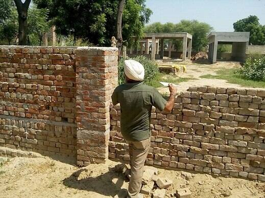 ਪਿੰਡ ਕੋਟਗੁਰੂ ਦੇ ਸ਼ਮਸ਼ਾਨਘਾਟ ਵਿਚ ਕੱਢੀ ਗਈ ਕੰਧ