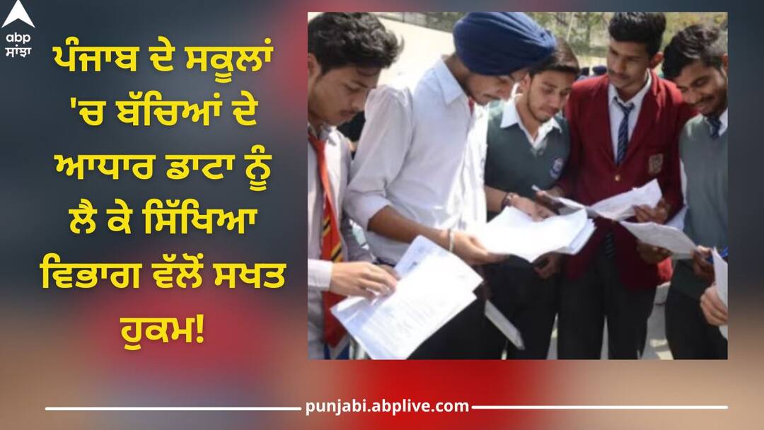 Punjab education department: ਹੁਣ ਪੰਜਾਬ ਦੇ ਸਕੂਲਾਂ ਵਿੱਚ ਵਿਦਿਆਰਥੀਆਂ ਤੋਂ ਵੱਖ-ਵੱਖ ਉਦੇਸ਼ਾਂ ਲਈ ਲਏ ਗਏ ਆਧਾਰ ਡੇਟਾ ਨੂੰ ਕਿਸੇ ਵੀ ਪੱਧਰ 'ਤੇ ਨਸ਼ਰ ਨਹੀਂ ਕੀਤਾ ਜਾਵੇਗਾ। ਜੇਕਰ ਕੋਈ ਸਕੂਲ ਜਾਂ ਅਧਿਆਪਕ ਅਜਿਹਾ ਕਰਦਾ ਹੈ ਤਾਂ ਦੋਸ਼ੀ ਪਾਏ ਜਾਣ 'ਤੇ ਸਖ਼ਤ ਕਾਰਵਾਈ ਕੀਤੀ ਜਾਵੇਗੀ। ਇਹ ਫੈਸਲਾ ਸਿੱਖਿਆ ਵਿਭਾਗ ਵੱਲੋਂ ਲਿਆ ਗਿਆ ਹੈ। ਇਸ ਸਬੰਧੀ ਸਾਰੇ ਜ਼ਿਲ੍ਹਿਆਂ ਨੂੰ ਪੱਤਰ ਲਿਖਿਆ ਗਿਆ ਹੈ। ਨਾਲ ਹੀ ਉਕਤ ਹੁਕਮਾਂ ਦੀ ਤੁਰੰਤ ਪ੍ਰਭਾਵ ਨਾਲ ਪਾਲਣਾ ਕਰਨ ਲਈ ਕਿਹਾ। ਪੱਤਰ ਵਿੱਚ ਸਪੱਸ਼ਟ ਲਿਖਿਆ ਗਿਆ ਹੈ ਕਿ ਇਹ ਪੱਤਰ ਉੱਚ ਅਧਿਕਾਰੀਆਂ ਦੇ ਹੁਕਮਾਂ ’ਤੇ ਜਾਰੀ ਕੀਤਾ ਗਿਆ ਹੈ।