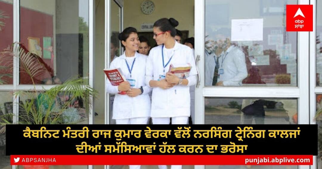 ਚੰਡੀਗੜ੍ਹ: ਪੰਜਾਬ ਦੇ ਮੈਡੀਕਲ ਸਿੱਖਿਆ ਤੇ ਖੋਜ ਮੰਤਰੀ ਡਾ. ਰਾਜ ਕੁਮਾਰ ਵੇਰਕਾ ਨੇ ਨਰਸਿੰਗ ਟ੍ਰੇਨਿੰਗ ਕਾਲਜਾਂ ਦੀਆਂ ਸਮੱਸਿਆਵਾਂ ਹੱਲ ਕਰਨ ਦਾ ਭਰੋਸਾ ਦਿੱਤਾ ਹੈ। ਇਸ ਦੇ ਨਾਲ ਹੀ ਉਨਾਂ ਨੇ ਨਰਸਿੰਗ ਦੇ ਵਿਦਿਆਰਥੀਆਂ ਨੂੰ ਵਧੀਆ ਵਾਤਾਵਰਣ ਤੇ ਸਹੂਲਤਾਂ ਦੇਣ ਦੀ ਨਰਸਿੰਗ ਟ੍ਰੇਨਿੰਗ ਕਾਲਜਾਂ ਨੂੰ ਅਪੀਲ ਕੀਤੀ ਹੈ ਤਾਂ ਜੋ ਇਨ੍ਹਾਂ ਕਾਲਜਾਂ ਦੇ ਵਿਦਿਆਰਥੀ ਮਿਆਰੀ ਸਿੱਖਿਆ ਹਾਸਲ ਕਰ ਸਕਣ।