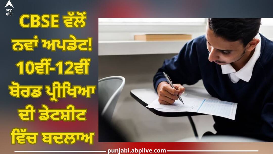 CBSE Board Exam 2024: ਸੈਂਟਰਲ ਬੋਰਡ ਆਫ਼ ਸੈਕੰਡਰੀ ਐਜੂਕੇਸ਼ਨ (CBSE) ਵੱਲੋਂ 10ਵੀਂ ਅਤੇ 12ਵੀਂ ਜਮਾਤ ਦੀ ਡੇਟਸ਼ੀਟ ਨੂੰ ਲੈ ਕੇ ਨਵਾਂ ਅਪਡੇਟ ਦਿੱਤਾ ਹੈ। ਜਿਵੇਂ ਕਿ ਸਭ ਜਾਣਦੇ ਹੀ ਨੇ ਕਿ CBSE ਨੇ ਪਹਿਲਾਂ ਹੀ ਡੇਟਸ਼ੀਟ ਜਾਰੀ ਕੀਤੀ ਗਈ ਸੀ, ਜਿਸ ਵਿੱਚ ਹੁਣ ਸੋਧ ਕੀਤੀ ਗਈ ਹੈ। ਕੁਝ ਪੇਪਰਾਂ ਵਿੱਚ ਬਦਲਾਅ ਦੇ ਨਾਲ, ਸੀਬੀਐਸਈ ਨੇ ਸੰਸ਼ੋਧਿਤ ਡੇਟਸ਼ੀਟ ਵੀ ਜਾਰੀ ਕੀਤੀ ਹੈ।