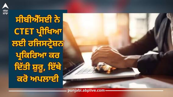 CBSE CTET 2024 Registration: ਕੇਂਦਰੀ ਸੈਕੰਡਰੀ ਸਿੱਖਿਆ ਬੋਰਡ (CBSE) ਨੇ ਕੇਂਦਰੀ ਅਧਿਆਪਕ ਯੋਗਤਾ ਪ੍ਰੀਖਿਆ 2024 ਲਈ ਰਜਿਸਟ੍ਰੇਸ਼ਨ ਪ੍ਰਕਿਰਿਆ ਸ਼ੁਰੂ ਕਰ ਦਿੱਤੀ ਹੈ। ਜੋ ਉਮੀਦਵਾਰ ਇਸ ਪ੍ਰੀਖਿਆ ਵਿੱਚ ਸ਼ਾਮਲ ਹੋਣ ਦੇ ਇੱਛੁਕ ਹਨ, ਉਹ ਅਧਿਕਾਰਤ ਵੈੱਬਸਾਈਟ ctet.nic.in 'ਤੇ ਜਾ ਕੇ ਆਨਲਾਈਨ ਫਾਰਮ ਭਰ ਸਕਦੇ ਹਨ। ਇਸ ਪ੍ਰੀਖਿਆ ਲਈ ਰਜਿਸਟ੍ਰੇਸ਼ਨ ਦੀ ਆਖਰੀ ਮਿਤੀ 23 ਨਵੰਬਰ 2023 ਹੈ।