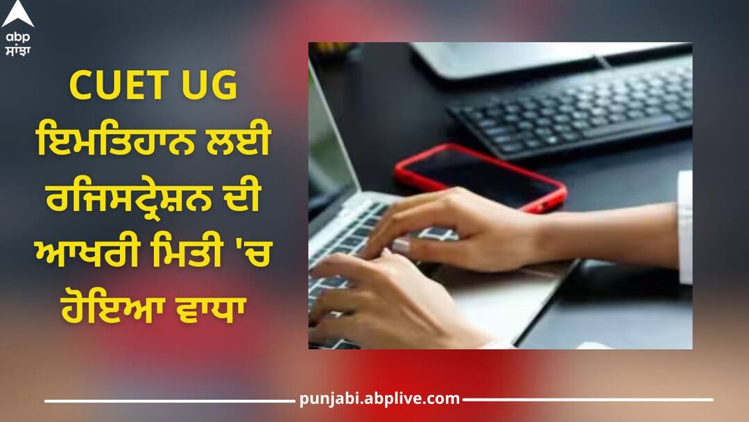 CUET UG 2024 Registration Last Date Extended: ਕਾਮਨ ਯੂਨੀਵਰਸਿਟੀ ਐਂਟਰੈਂਸ ਟੈਸਟ 2024 (CUET UG) ਲਈ ਰਜਿਸਟ੍ਰੇਸ਼ਨ ਦੀ ਆਖਰੀ ਮਿਤੀ ਵਧਾ ਦਿੱਤੀ ਗਈ ਹੈ। ਯੂਨੀਵਰਸਿਟੀ ਗ੍ਰਾਂਟਸ ਕਮਿਸ਼ਨ ਵੱਲੋਂ ਜਾਰੀ ਨੋਟਿਸ ਅਨੁਸਾਰ ਹੁਣ ਉਮੀਦਵਾਰ 31 ਮਾਰਚ ਤੱਕ ਇਸ ਪ੍ਰੀਖਿਆ ਲਈ ਰਜਿਸਟ੍ਰੇਸ਼ਨ ਕਰਵਾ ਸਕਦੇ ਹਨ। ਦਿਲਚਸਪੀ ਰੱਖਣ ਵਾਲੇ ਅਤੇ ਯੋਗ ਉਮੀਦਵਾਰ ਇੱਥੇ ਦਿੱਤੇ ਗਏ ਕਦਮਾਂ ਦੀ ਪਾਲਣਾ ਕਰਕੇ ਇਸ ਪ੍ਰੀਖਿਆ ਲਈ ਰਜਿਸਟਰ ਕਰ ਸਕਦੇ ਹਨ। ਇਸ ਤੋਂ ਇਲਾਵਾ ਉਮੀਦਵਾਰ ਇੱਥੇ ਦਿੱਤੇ ਸਿੱਧੇ ਲਿੰਕ ਦੀ ਮਦਦ ਨਾਲ ਵੀ ਅਪਲਾਈ ਕਰ ਸਕਦੇ ਹਨ। ਰਜਿਸਟਰ ਕਰਨ ਲਈ, ਤੁਸੀਂ ਅਧਿਕਾਰਤ ਸਾਈਟ cuetug.ntaonline.in 'ਤੇ ਜਾ ਸਕਦੇ ਹੋ।