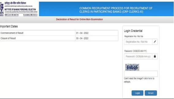 ਦਸ ਦਈਏ ਕਿ 25 ਜਨਵਰੀ 2022 ਇਸ ਲਈ ਇਮਤਿਹਾਨ ਆਯੋਜਿਤ ਕੀਤਾ ਗਿਆ ਸੀ। ਉਮੀਦਵਾਰ ਰਜਿਸਟ੍ਰੇਸ਼ਨ ਨੰਬਰ ਜਾਂ ਰੋਲ ਨੰਬਰ ਅਤੇ ਜਨਮ ਮਿਤੀ ਦੀ ਵਰਤੋਂ ਕਰਦੇ ਹੋਏ ਲਿੰਕ ਦੇ ਬਿਲਕੁਲ ਹੇਠਾਂ ਆਈਬੀਪੀਐਸ ਕਲਰਕ ਮੇਨਜ਼ ਰਿਜ਼ਲਟ ਲਿੰਕ ਰਾਹੀਂ IBPS ਨਤੀਜਾ ਡਾਊਨਲੋਡ ਕਰ ਸਕਦੇ ਹਨ। ਚੁਣਿਆ ਗਿਆ ਉਮੀਦਵਾਰ ਦੇਸ਼ ਭਰ ਵਿੱਚ ਆਰਜ਼ੀ ਅਲਾਟਮੈਂਟ ਲਈ ਪੇਸ਼ ਹੋਵੇਗਾ। ਅਸਥਾਈ ਤੌਰ 'ਤੇ ਅਲਾਟ ਕੀਤੇ ਗਏ ਉਮੀਦਵਾਰਾਂ ਦੀ ਸੂਚੀ (ਰਜਿਸਟ੍ਰੇਸ਼ਨ ਨੰਬਰ ਕ੍ਰਮ ਵਿੱਚ ਰਾਜ ਅਨੁਸਾਰ/ਯੂਟੀ ਅਨੁਸਾਰ) 01 ਮਈ 2022 ਨੂੰ ਜਾਂ ਇਸ ਤੋਂ ਪਹਿਲਾਂ IBPS ਦੀ ਵੈੱਬਸਾਈਟ, www.ibps.in 'ਤੇ ਉਪਲਬਧ ਹੋਵੇਗੀ।